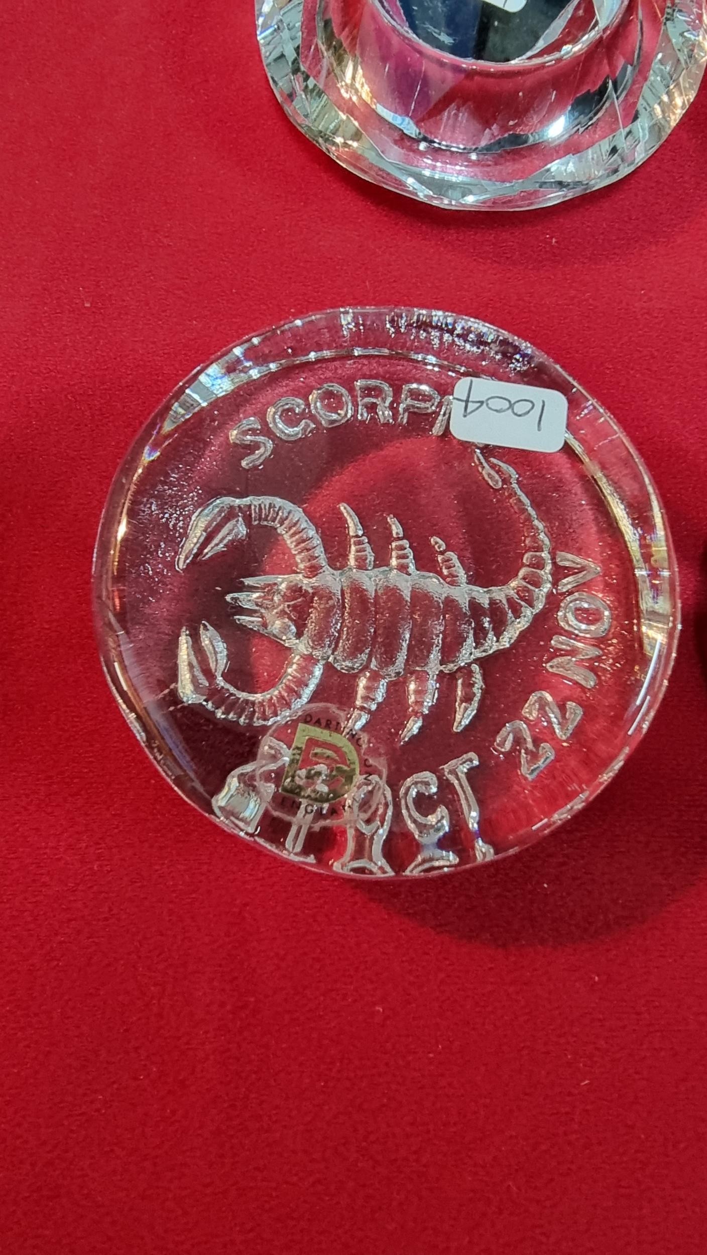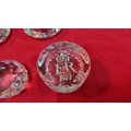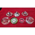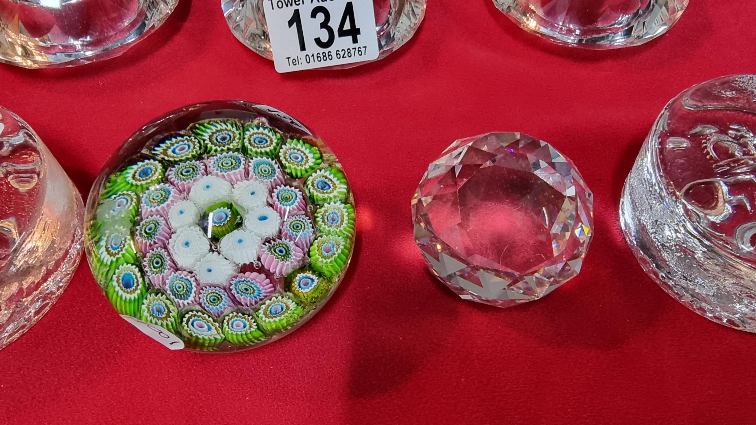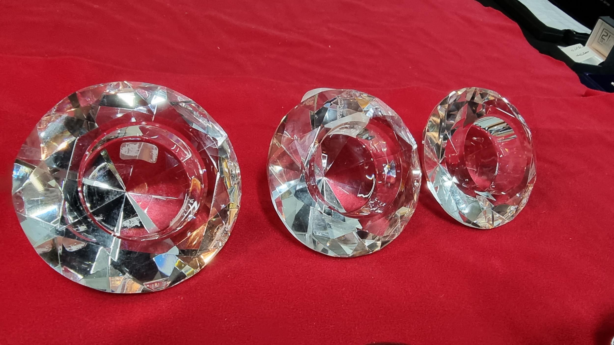 4x glass paperweights, 2x by Dartington along with 3x glass diamond formed T-light holders