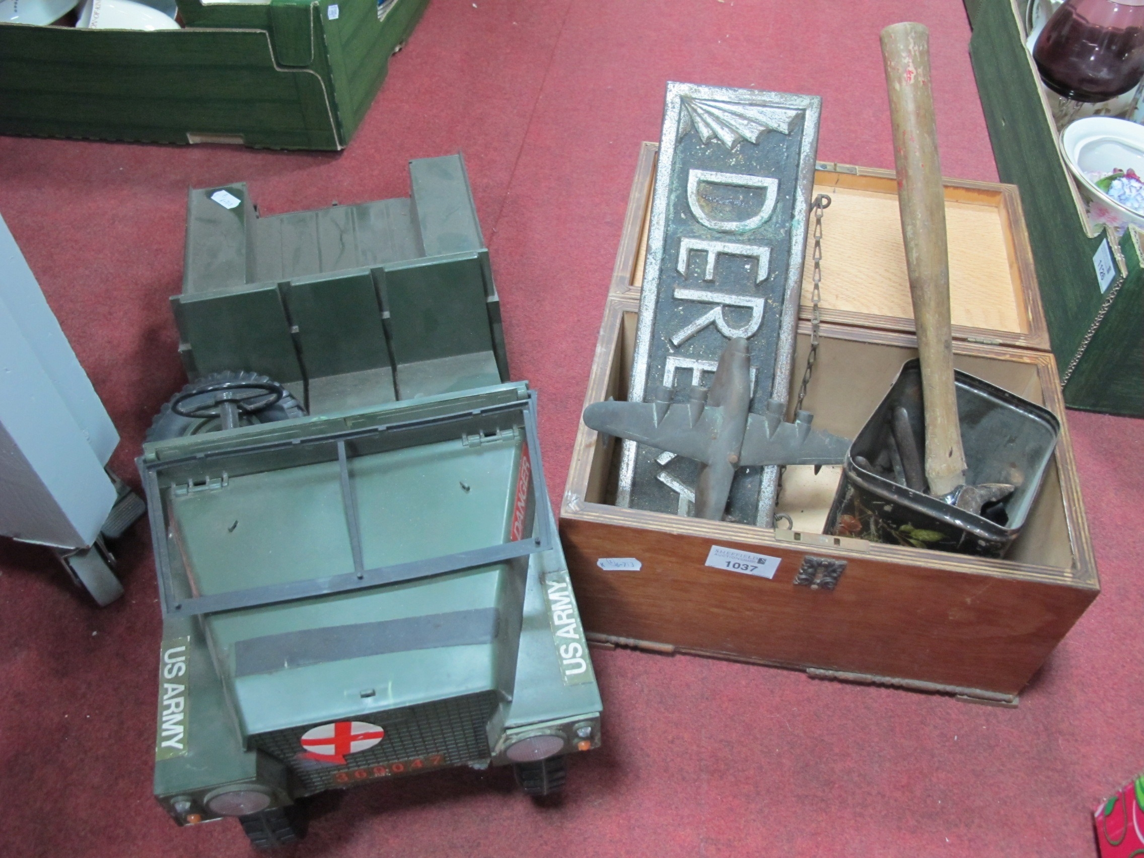 Trench Art Brass Model of a Bomber Plane, 20cm wide x 16cm long. Tools, sign, model jeep, etc.