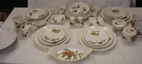 Masons Ironstone Strathmore Dinner & Tea Ware inc. Regency pattern square sandwich plate, deep fruit bowl, circular lidded entree dish, oval lidded entree dish, tea caddy & cover, 4 mugs similar pattern, 1 mug slight variation in pattern, small gravy boat & saucer, sugar bowl, milk jug, small fruit bowl, small soup basin, 5 large cups & saucers, 1 coffee can & saucer, 1 spare circular lid, 2 rectangular canted corner pickle dishes, oval platter, teapot, coffee pot, large milk jut, 2 covered jam pots, cheese dish & cover, gravy boat, sandwich plate, cruet set & stand, salt & pepper, toothpick holder, egg cup, small tea plate, 8 side plates, 8 dessert plates & 7 dinner plates