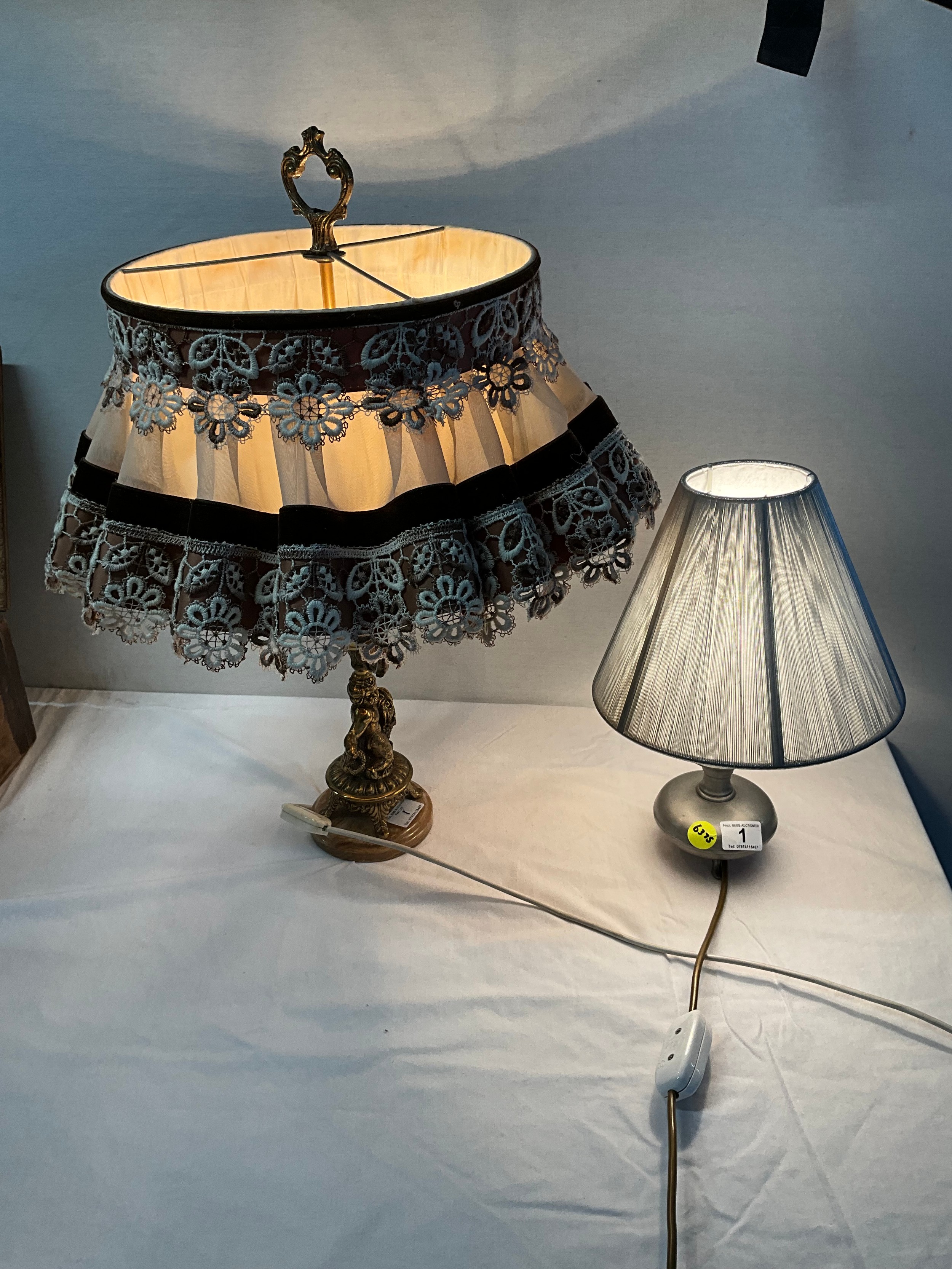TWO METAL TABLE LAMPS COMPLETE WITH SHADES