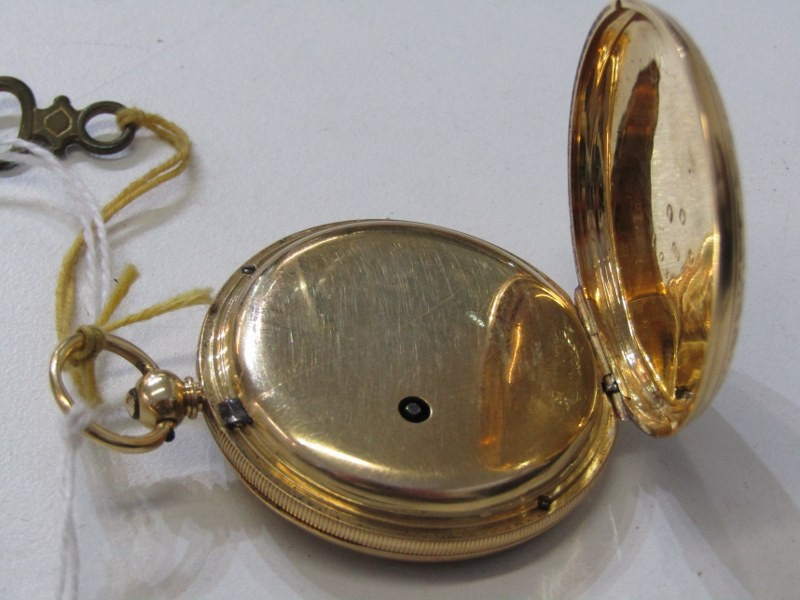 GOLD CASED POCKET WATCH, An 18ct yellow gold cased key wind pocket watch, the case with foliate engraved decoration, approx 58.8 grms in total