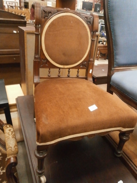 A small vintage nursing chair with upholstered seat pads