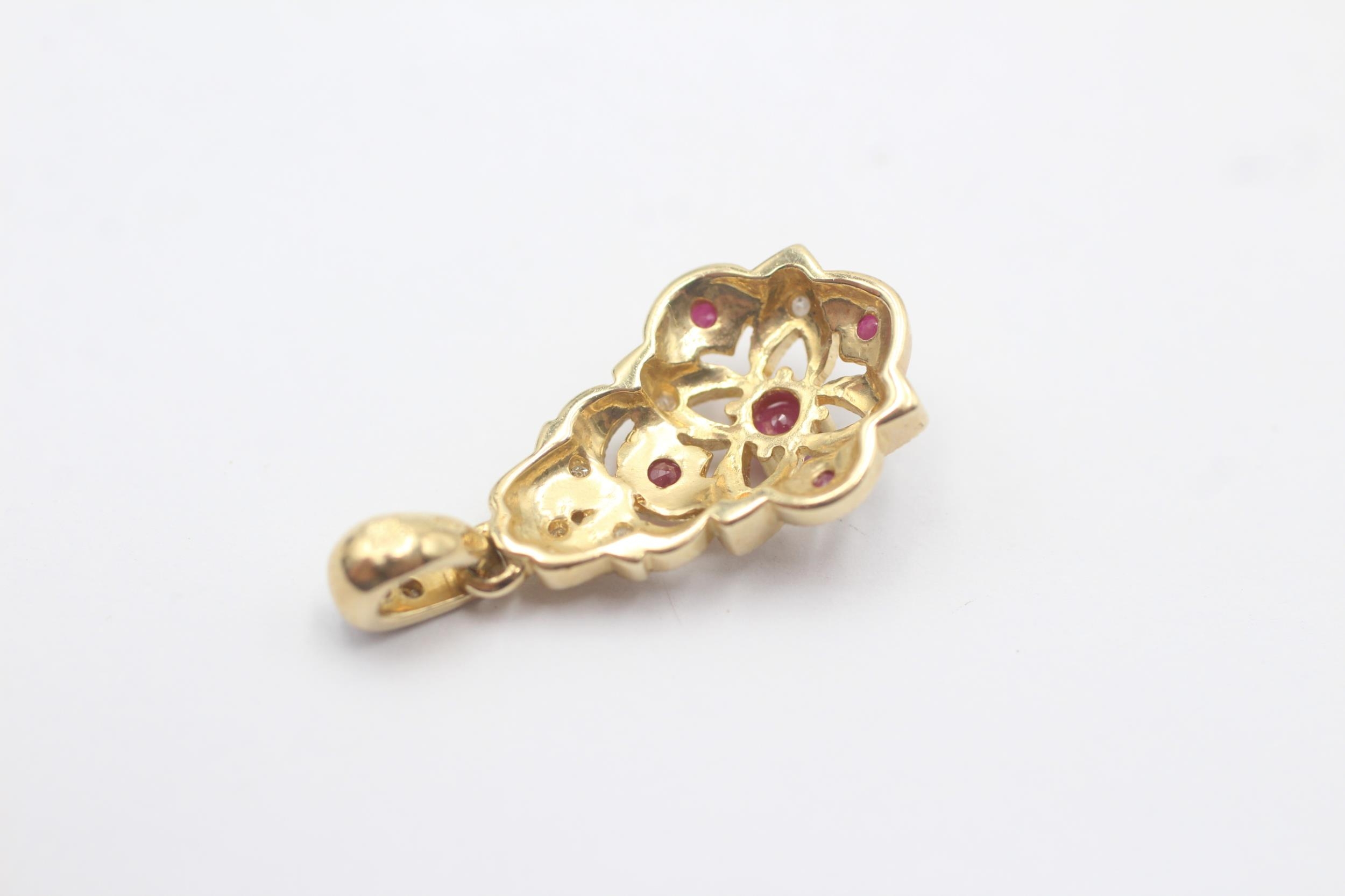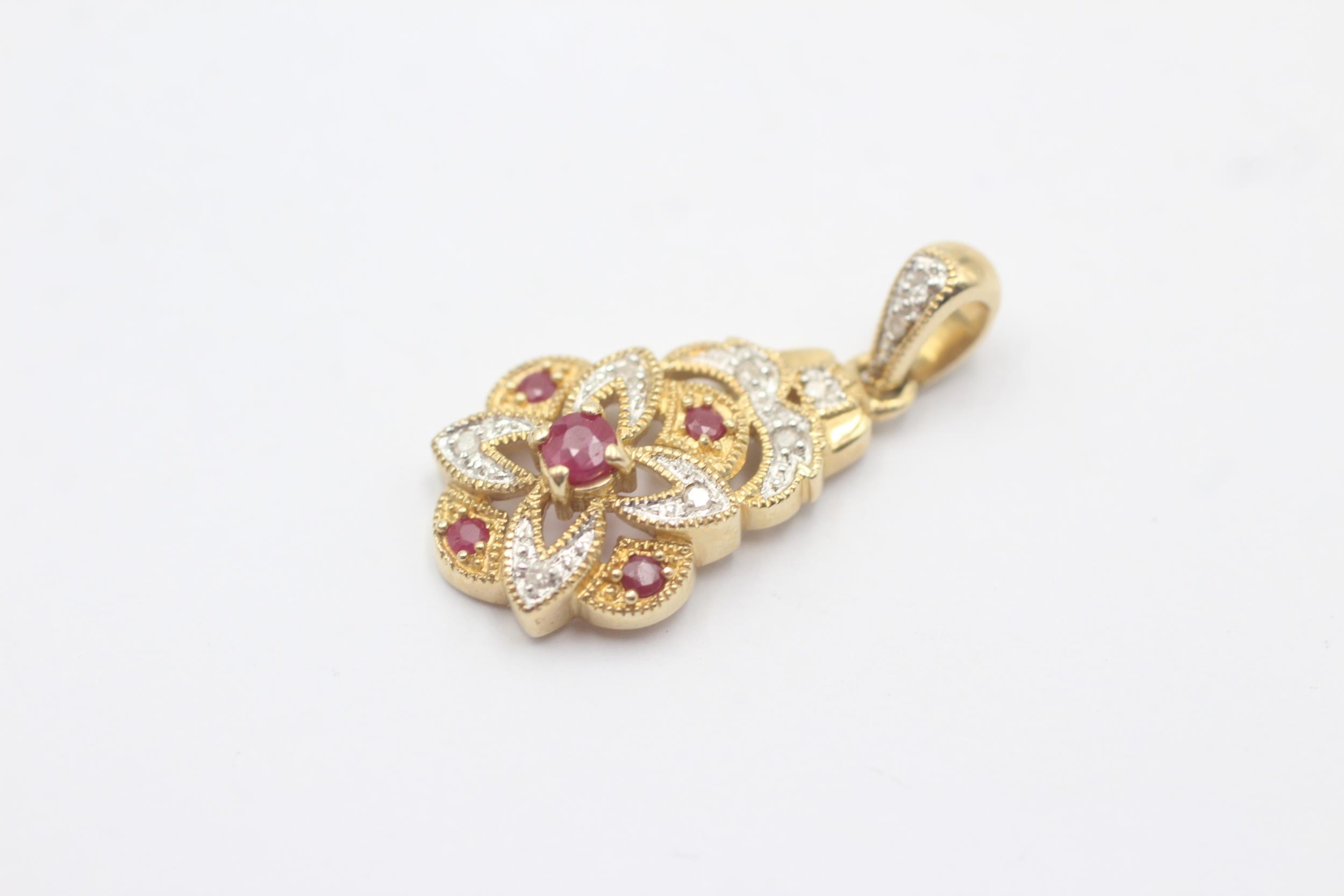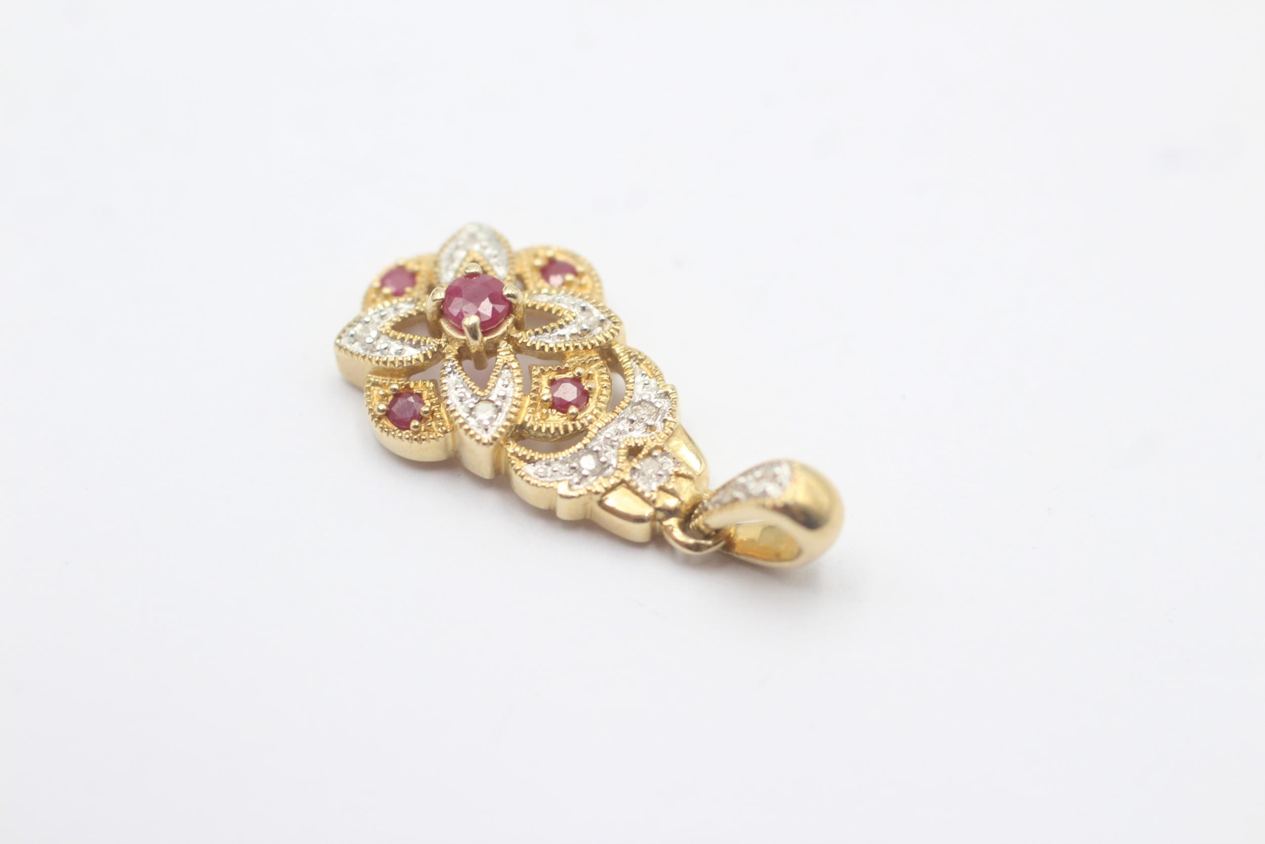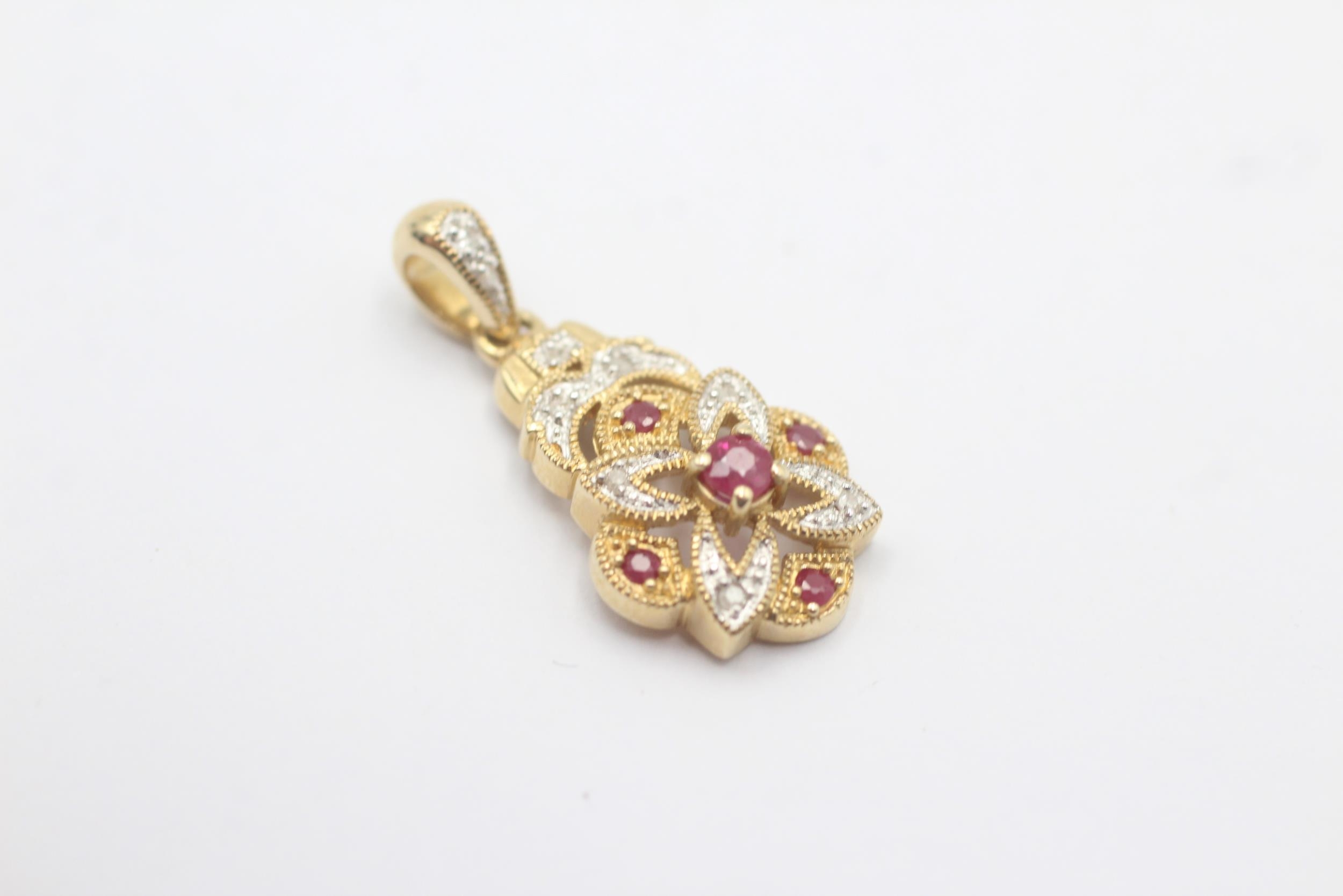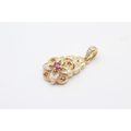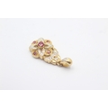 9ct White And Yellow Gold Diamond And Ruby Paved Ornate Drop Charm Pendant (2.5g)