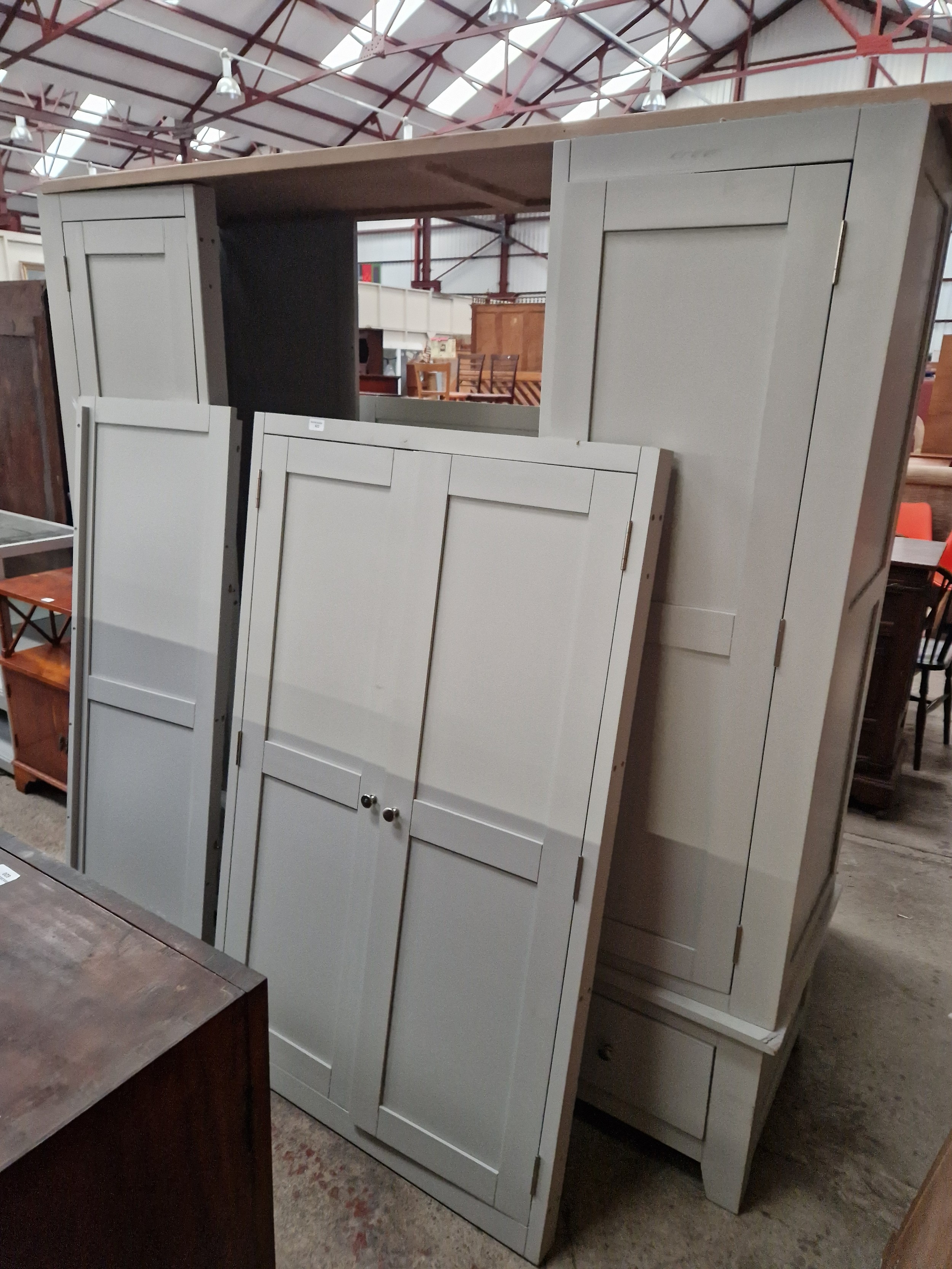 A large painted modern 4 door wardrobe on 3 drawer base