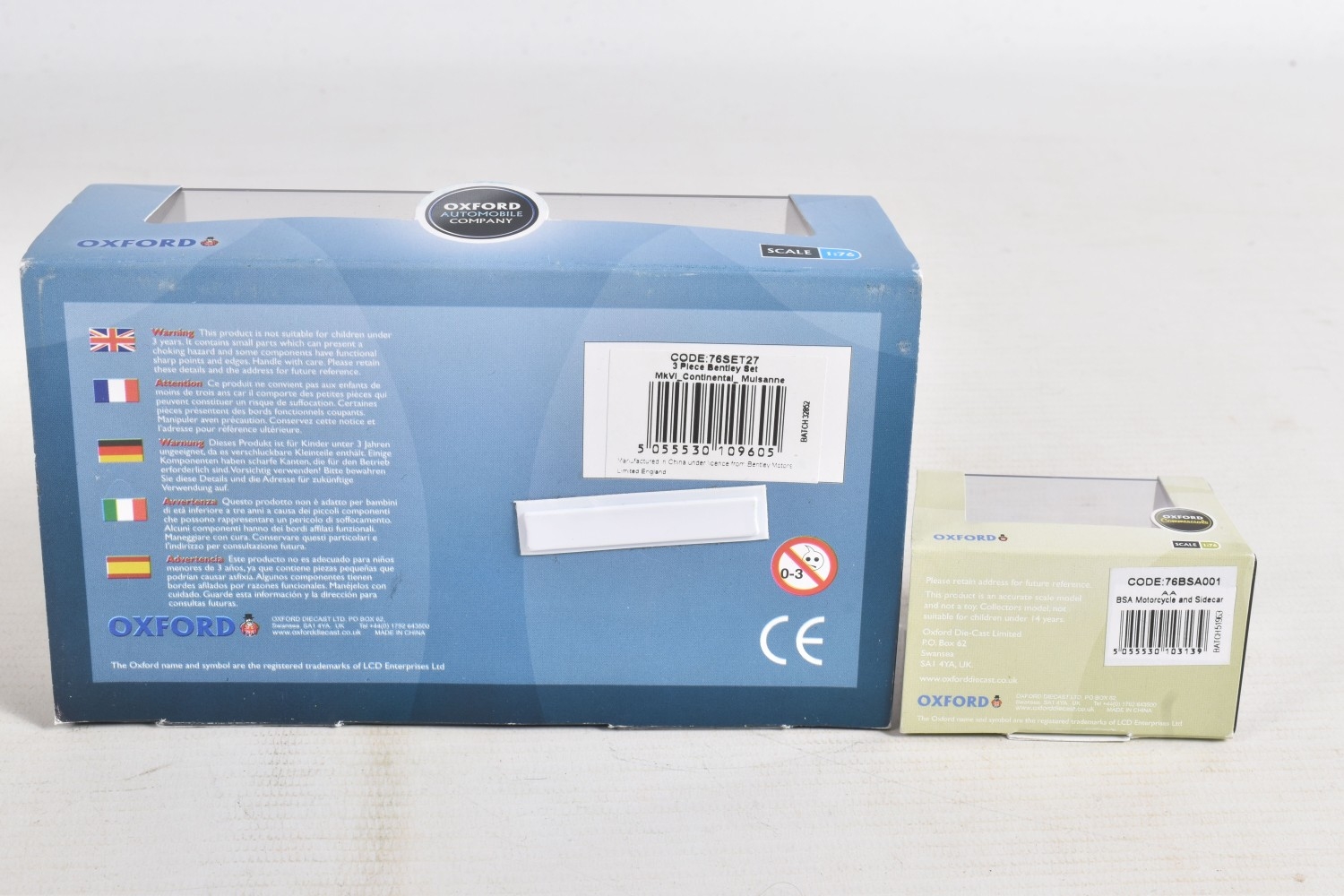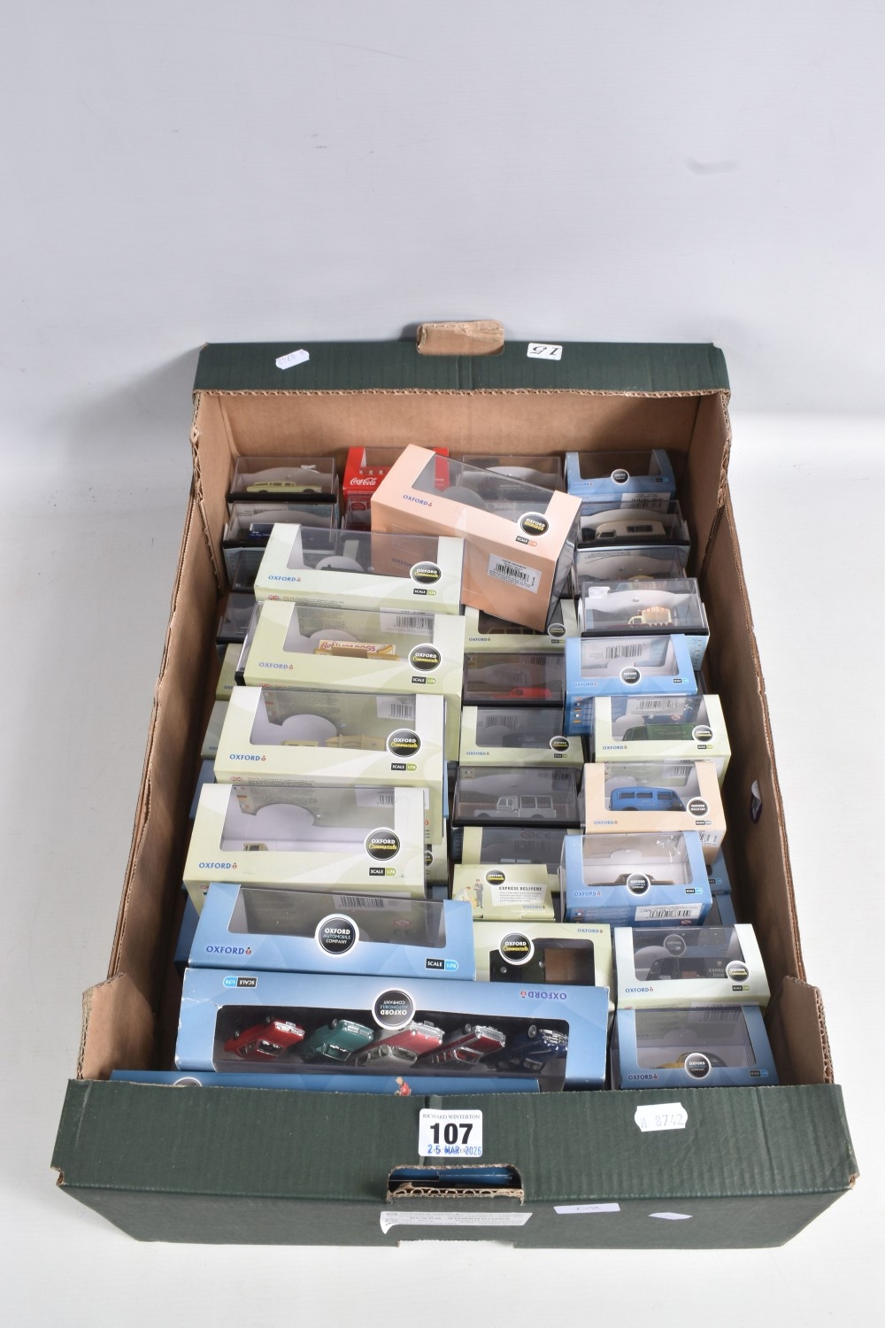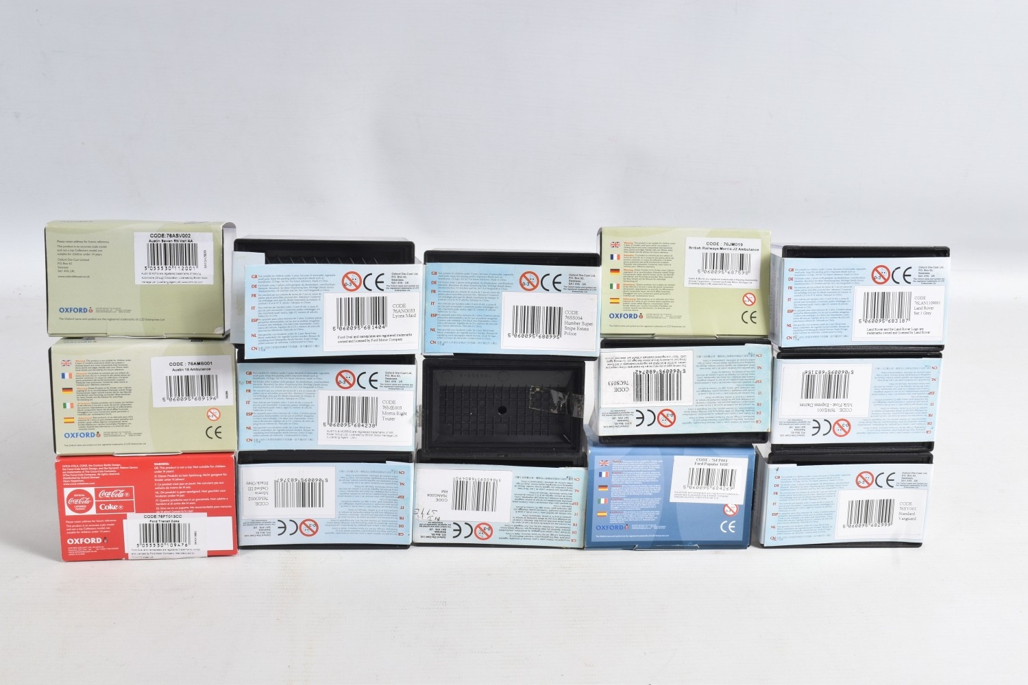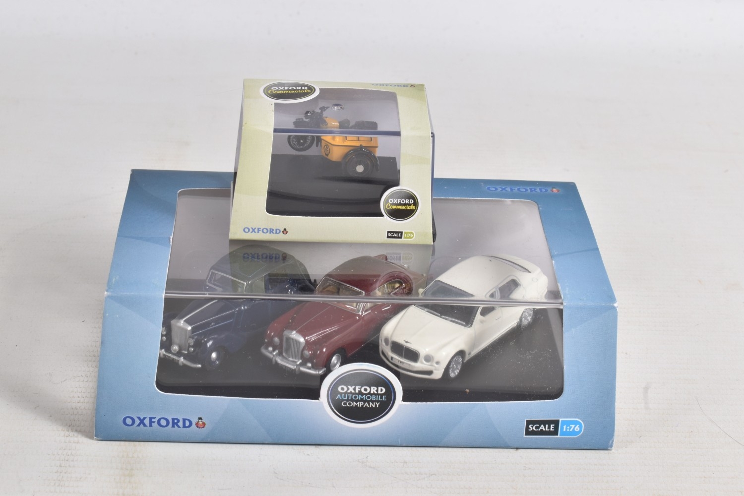 A COLLECTION OF BOXED 1:76 SCALE OXFORD DIECAST MODEL VEHICLES, to include an Original AFS Green Goddess no. 76GG001, a Southern National Bedford OWB no. 76OWB004, a 'Bob's Hot Dogs' Mobile Trailer no. 76TR001, a Strato Silver Ford Escort XR3i no. 76XR001, a BSA Motorcycle and Sidecar no. 76BSA001, a Charleston Yellow Black Citroen 2CV no. 76CT002, a Di Mascios no. 76ANG039, a 5 piece Vauxhall set with a Wyvern, Cresta, FB, Friary and a Viva no. 76SET30 along with another 5 piece Land Rover set I, II, Defender, Disco and a Freelander no. 76SET32 to name a few out of this nice collection, although not checked for completeness, the packaging is in good condition and appears to have not been opened
