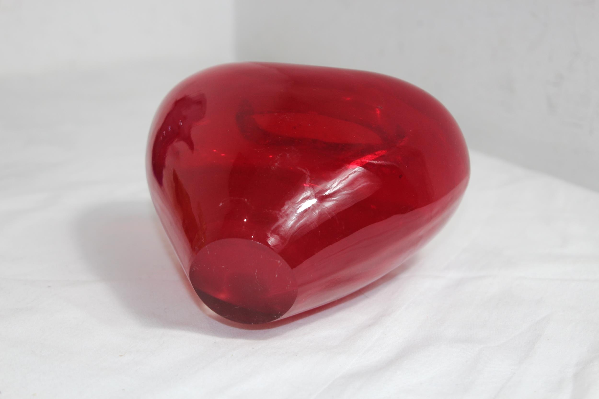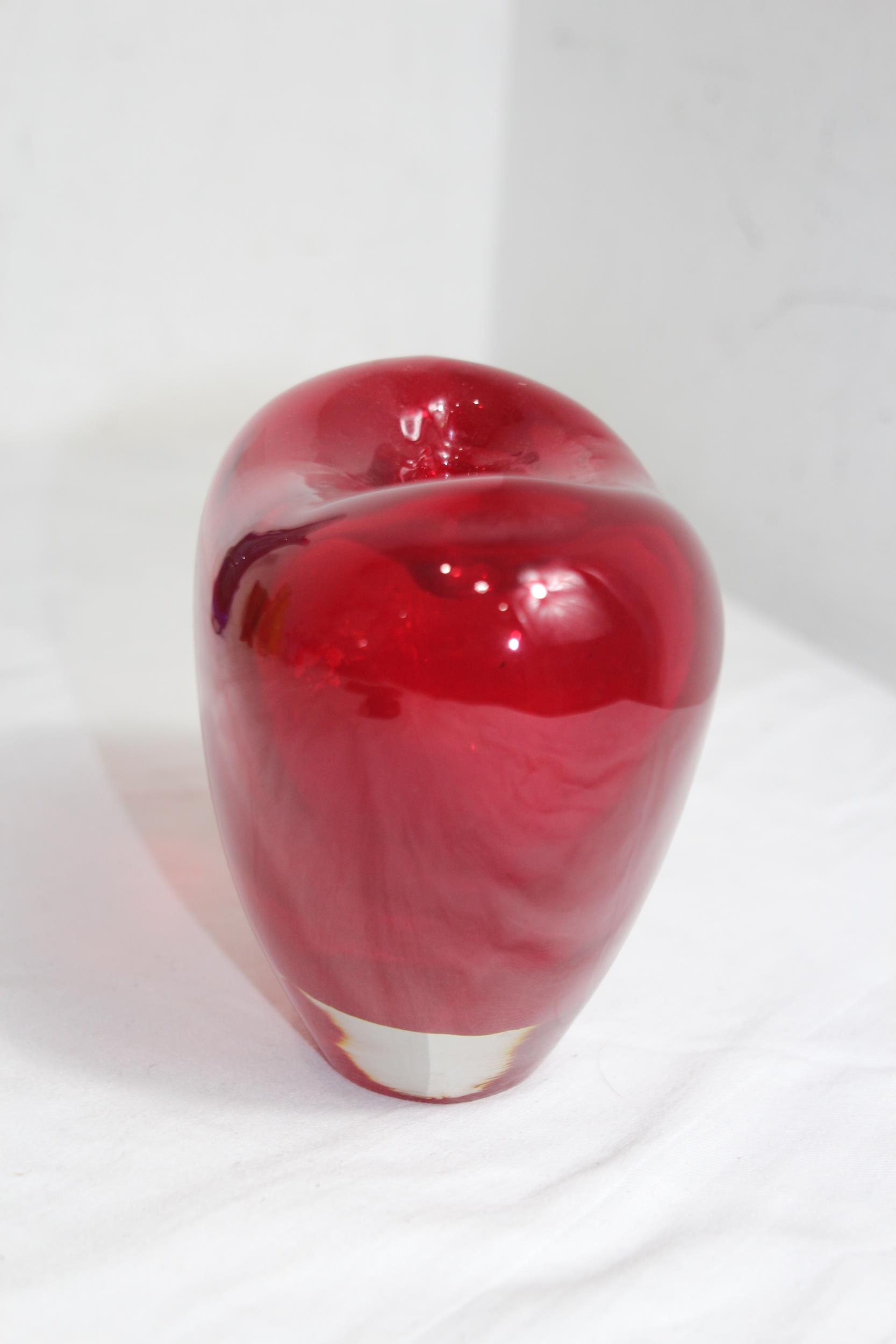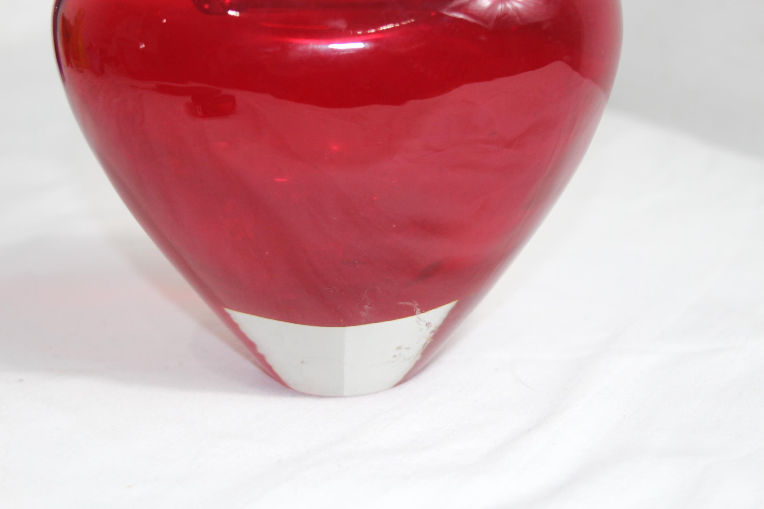 VINTAGE RED DERU DESIGN ART GLASS VASE13 X 17CM