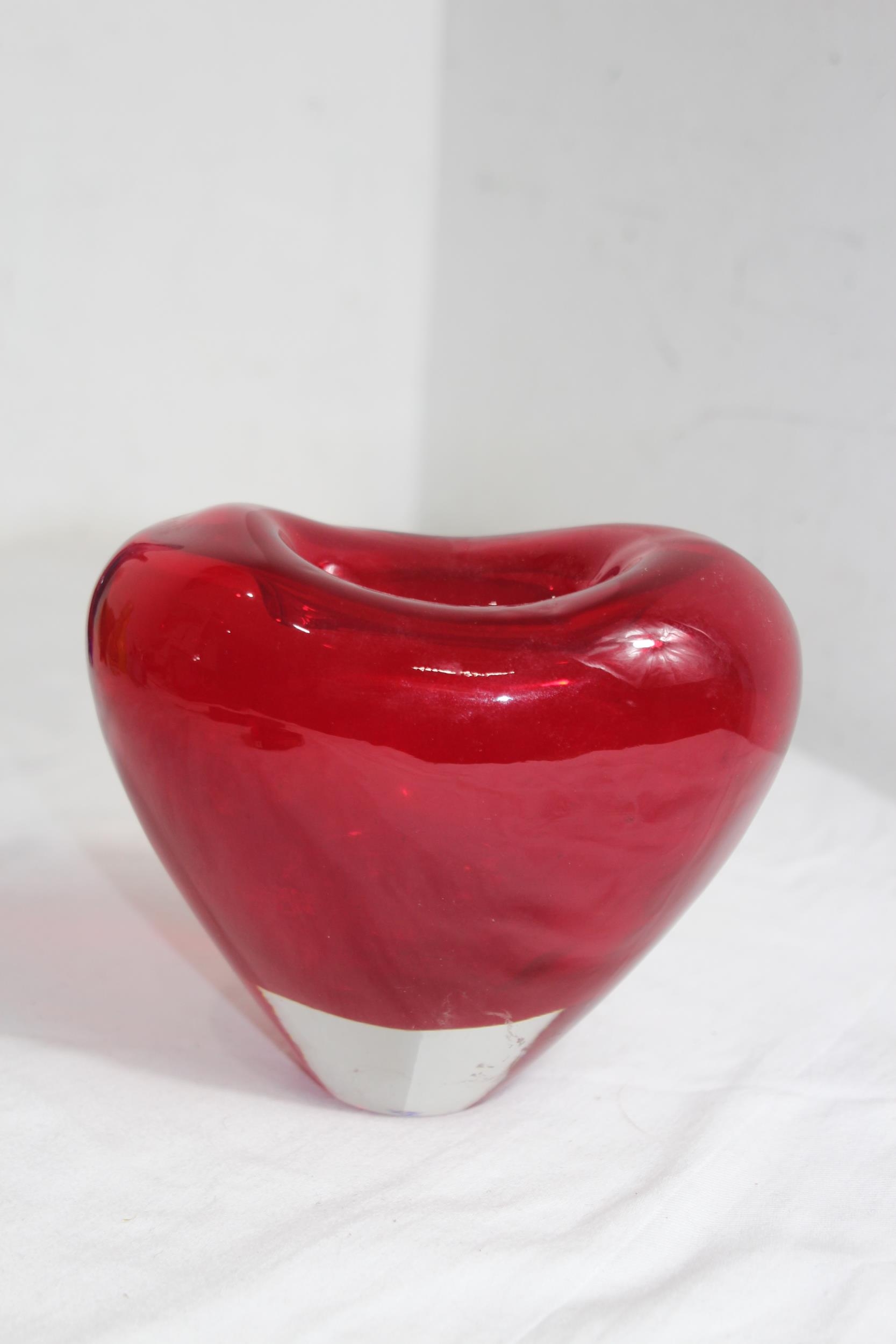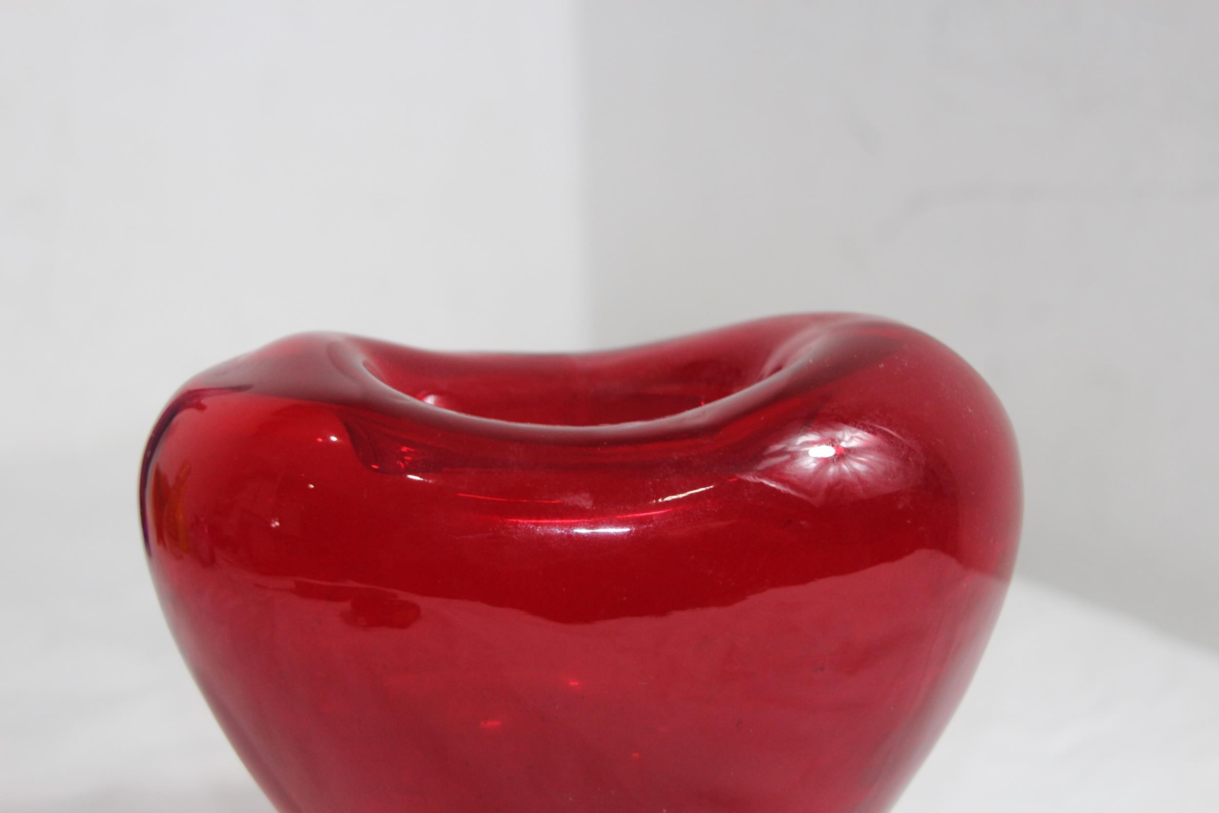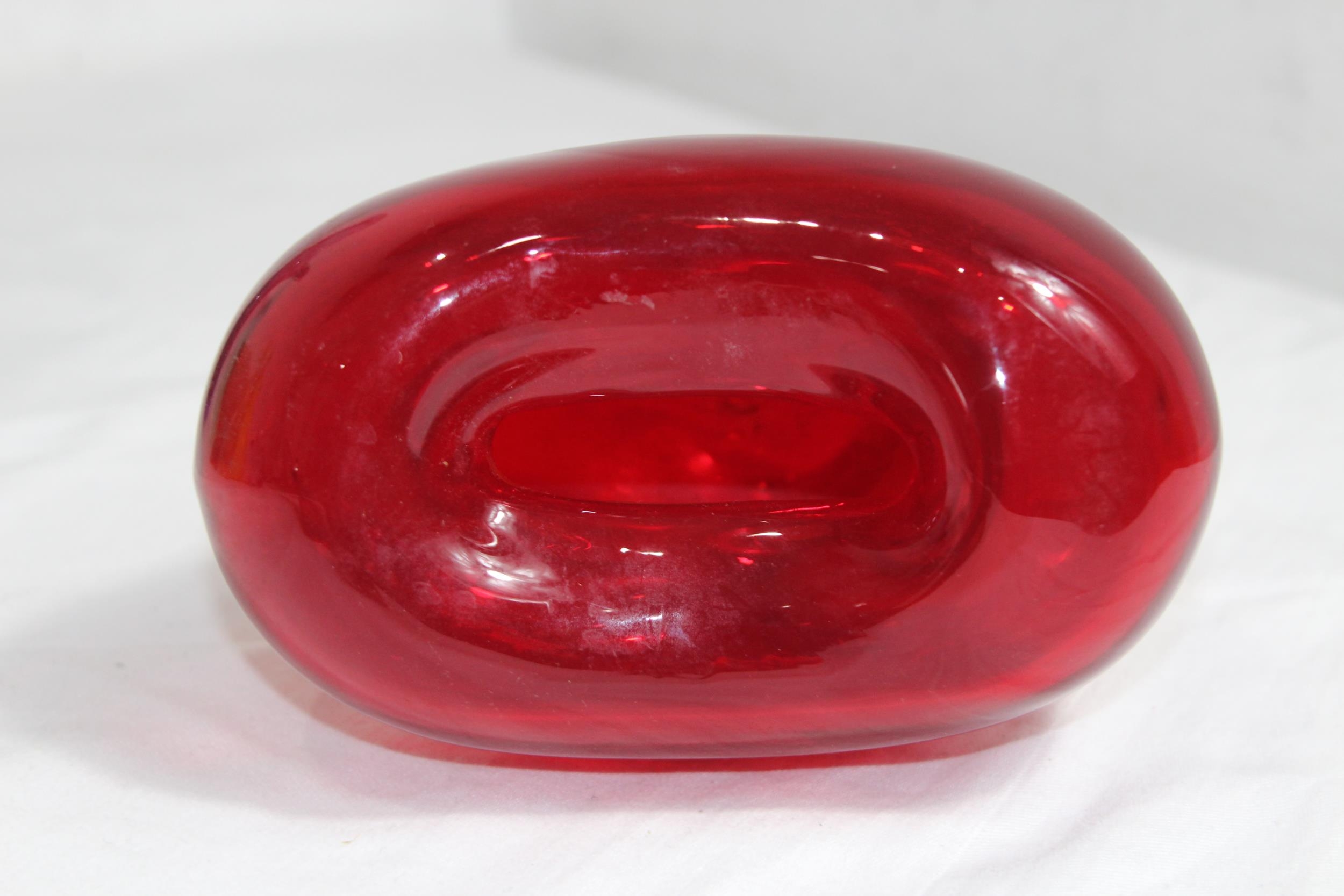 VINTAGE RED DERU DESIGN ART GLASS VASE13 X 17CM