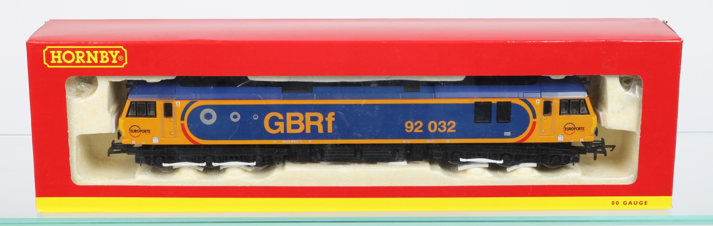 A Hornby OO gauge GBRf Class 92 Co-Co Diesel Locomotive (R3135). 92032 in blue and yellow livery. Boxed, minor wear. Contents VGC-Mint. £50-70