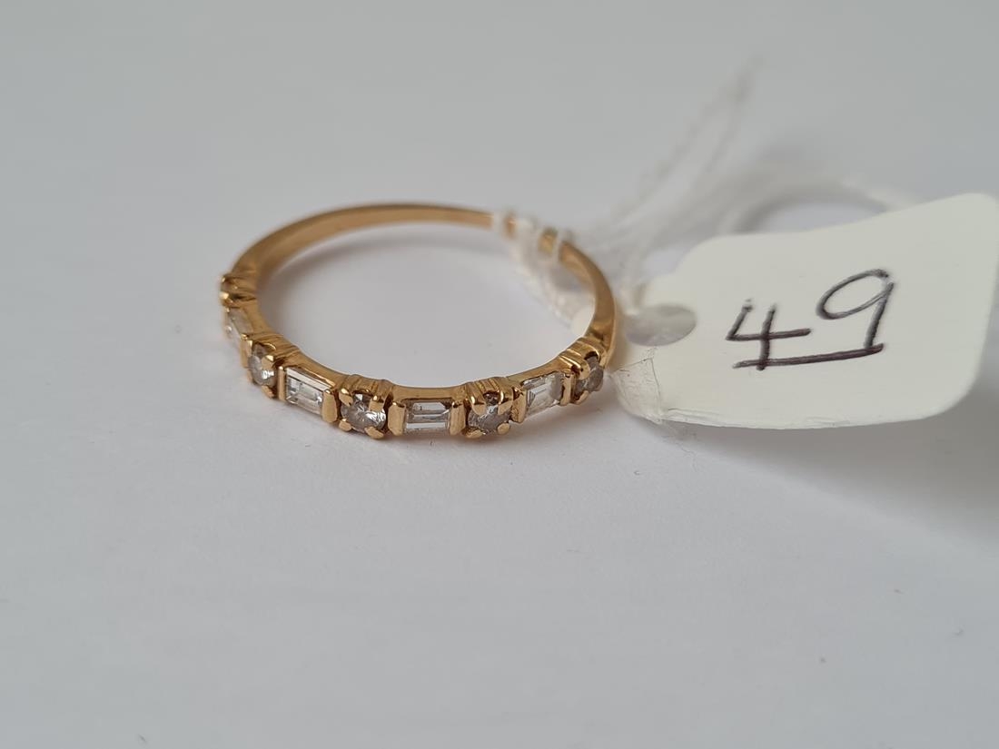 A 9 STONE BAGUETTE DIAMOND HALF ETERNITY RING IN HIGH CARAT GOLD - size R - 1.8gms