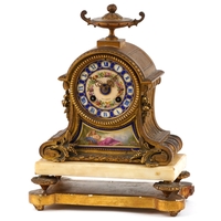 The clock winds and is currently running. The garnitures have two small chips. There are some small general nibbles to the edges. Overall good general condition. As per the online images