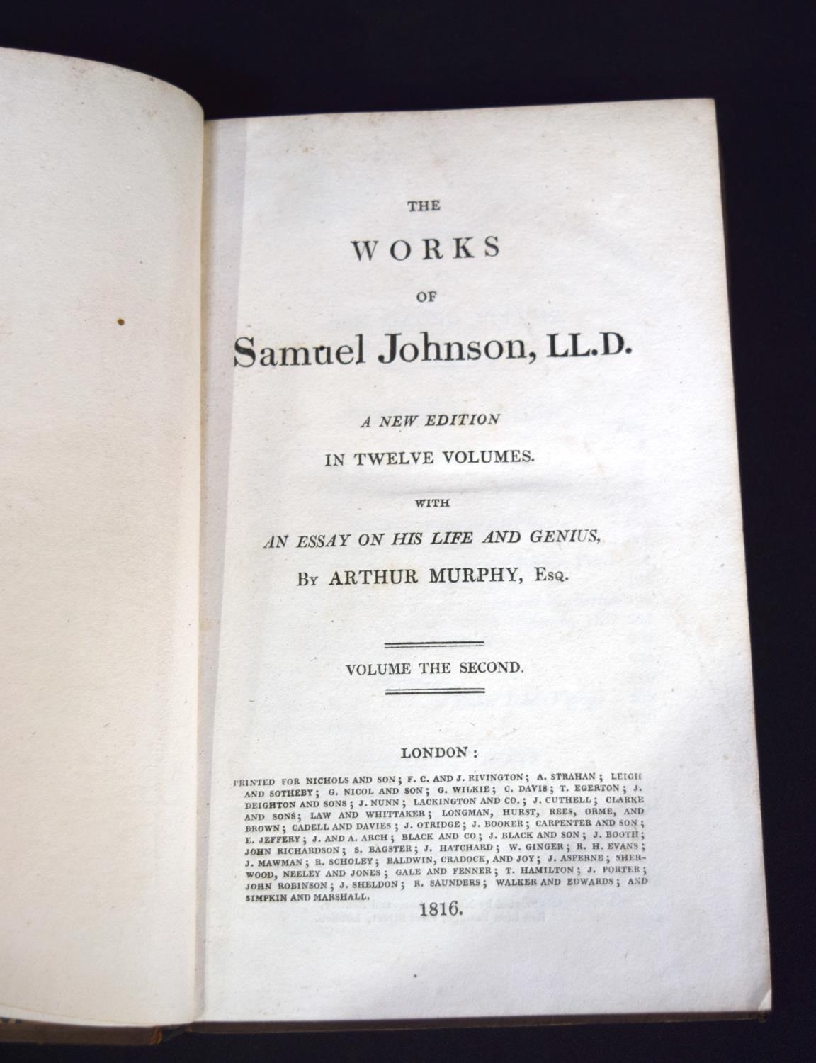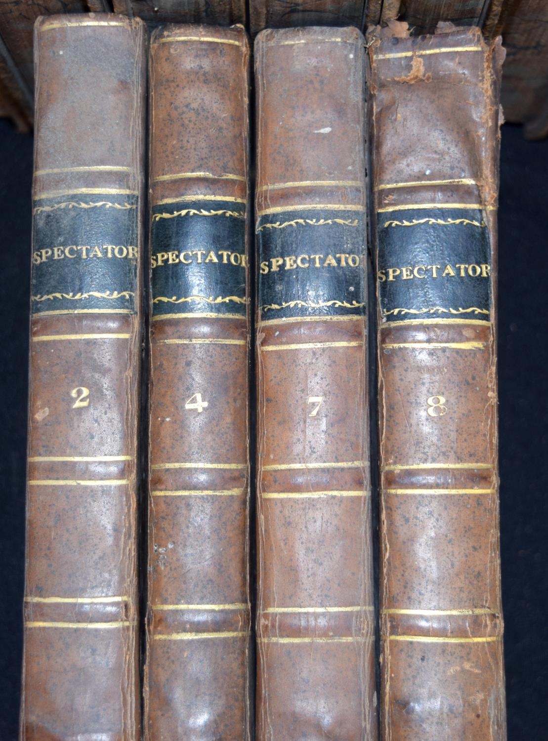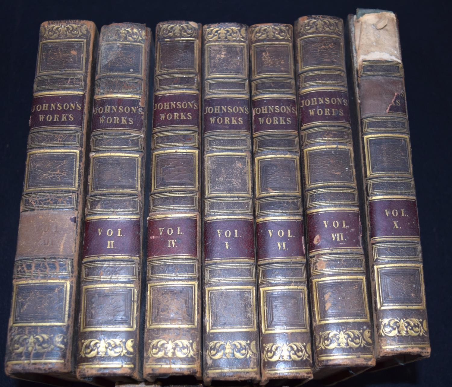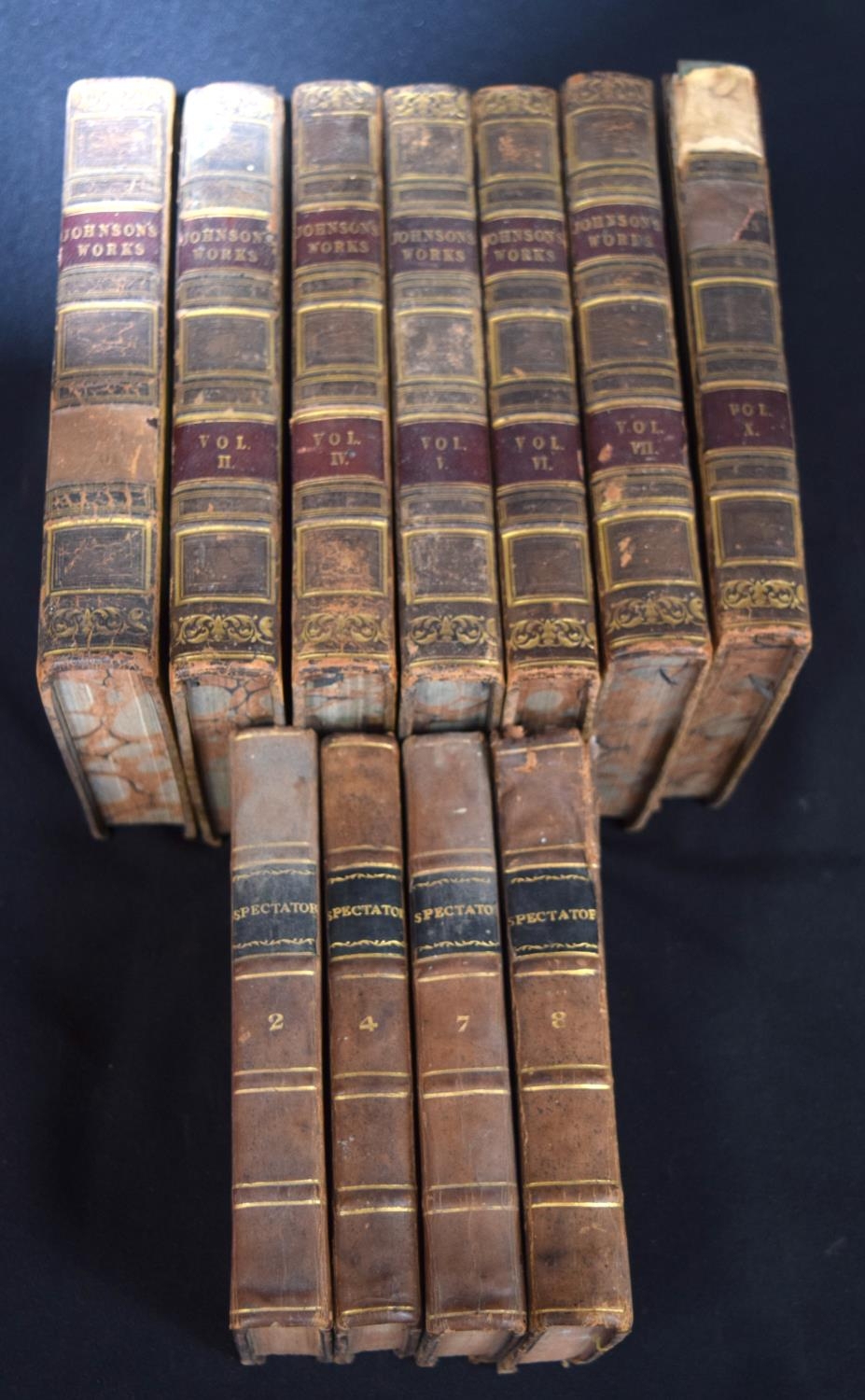 Collection of Books seven volumes of The works of Samuel Johnson printed 1816 together with Four volumes of the Spectator printed 1723 21 x 14cm (1)