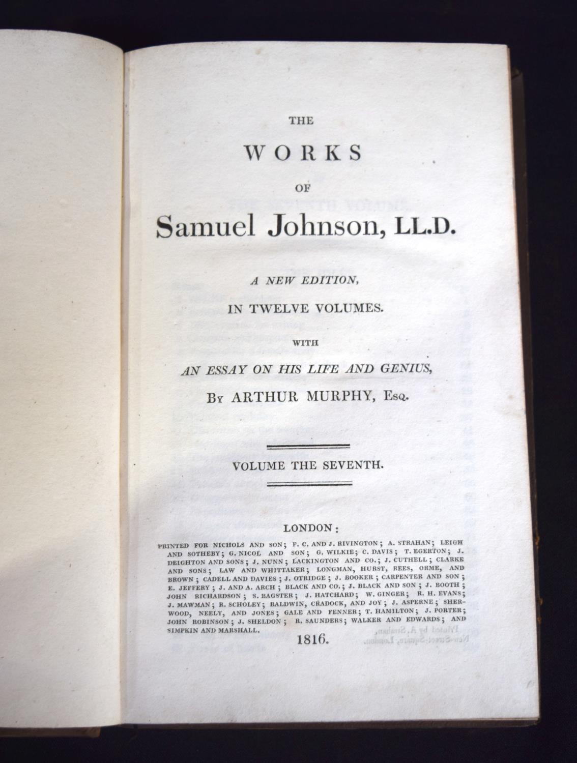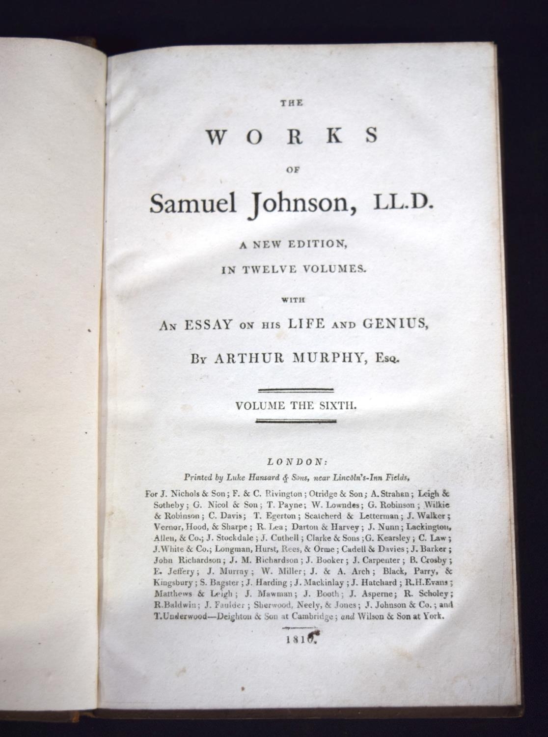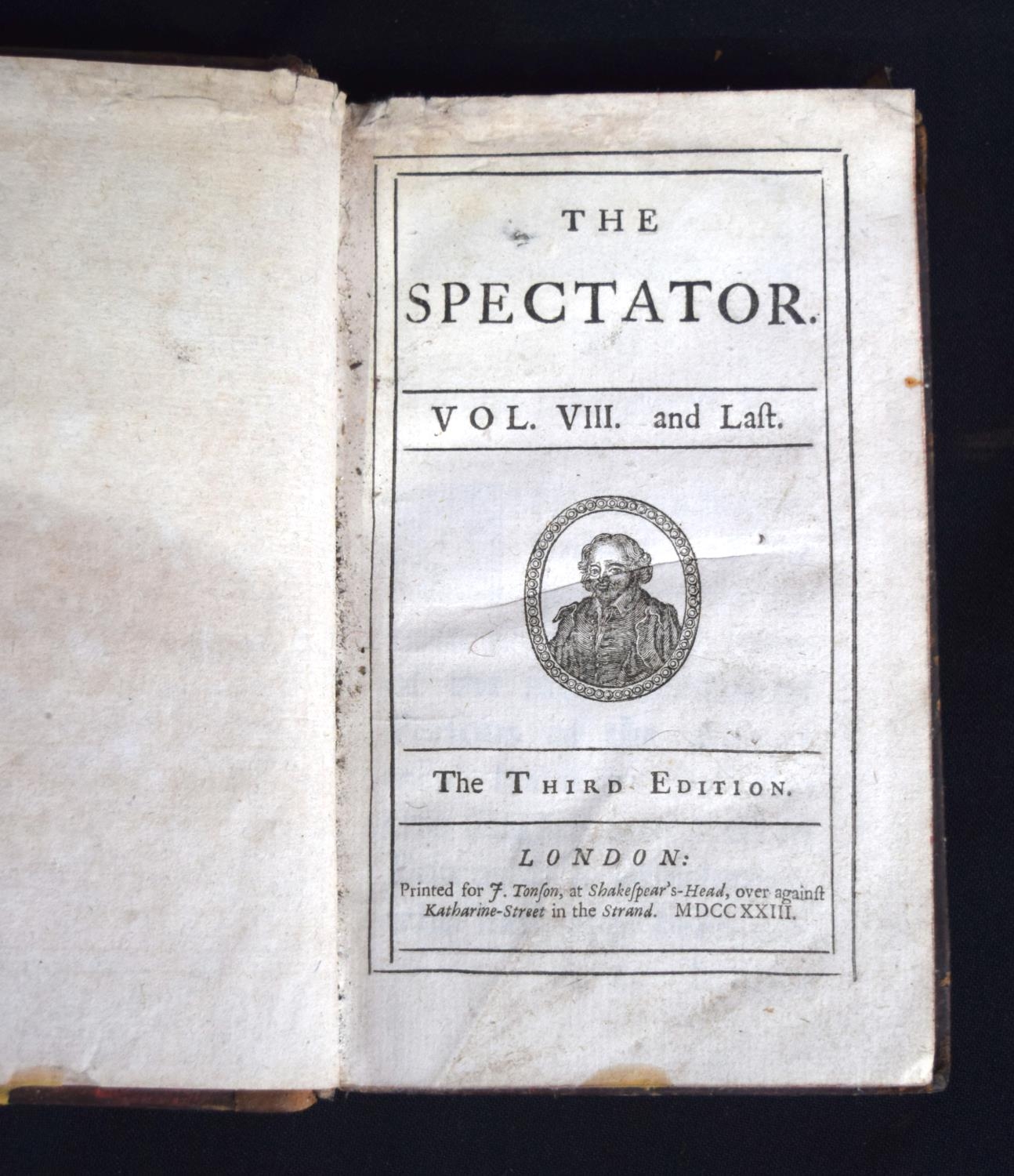 Collection of Books seven volumes of The works of Samuel Johnson printed 1816 together with Four volumes of the Spectator printed 1723 21 x 14cm (1)