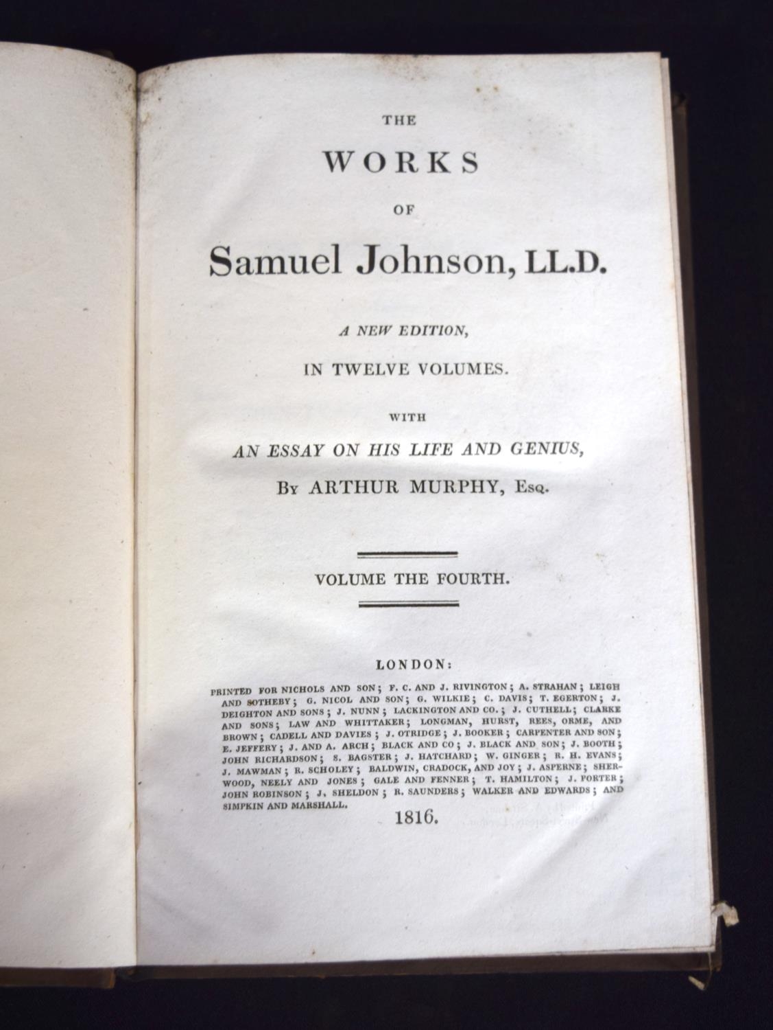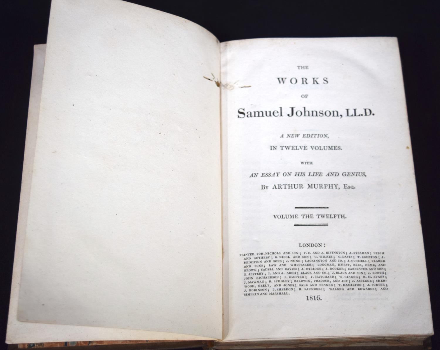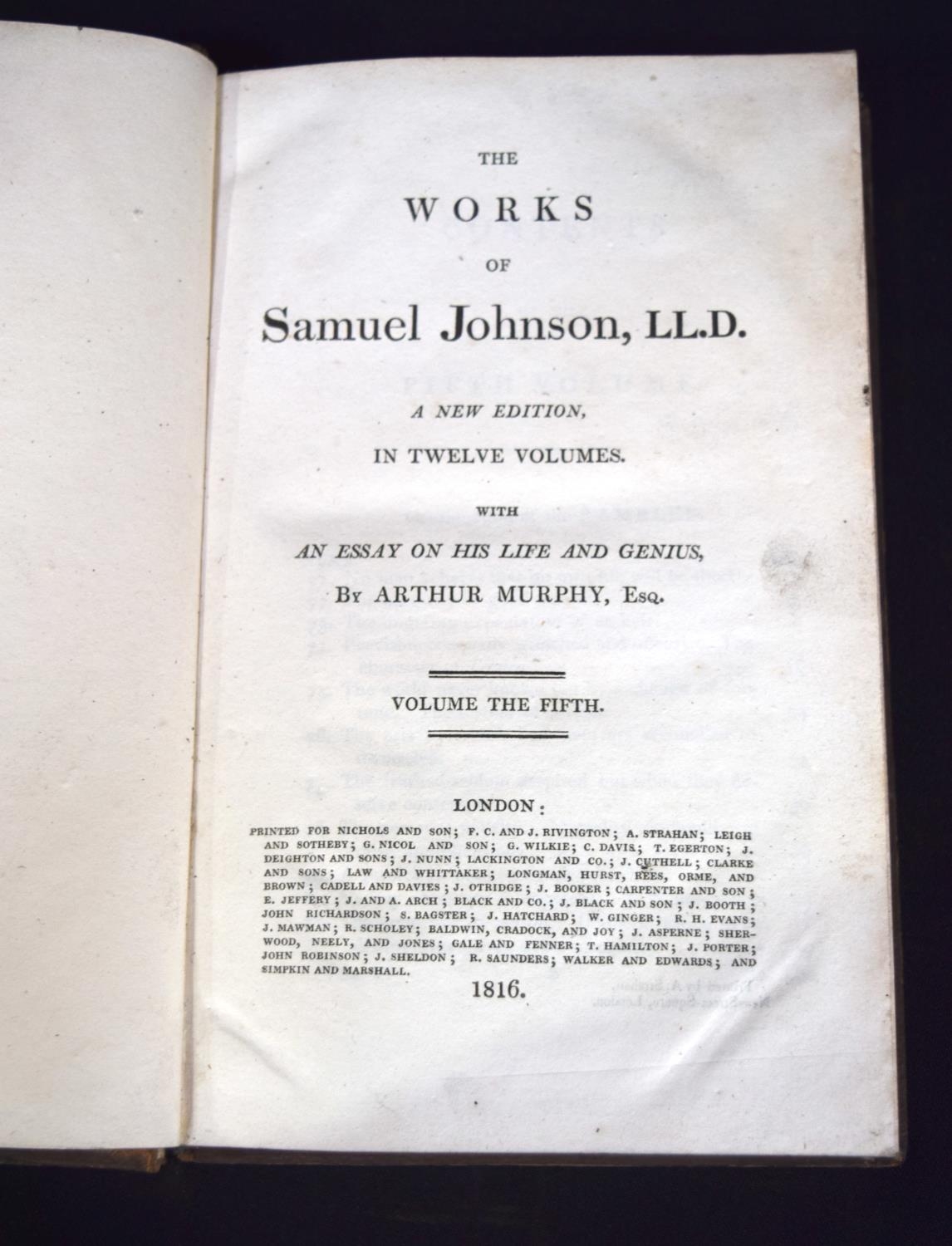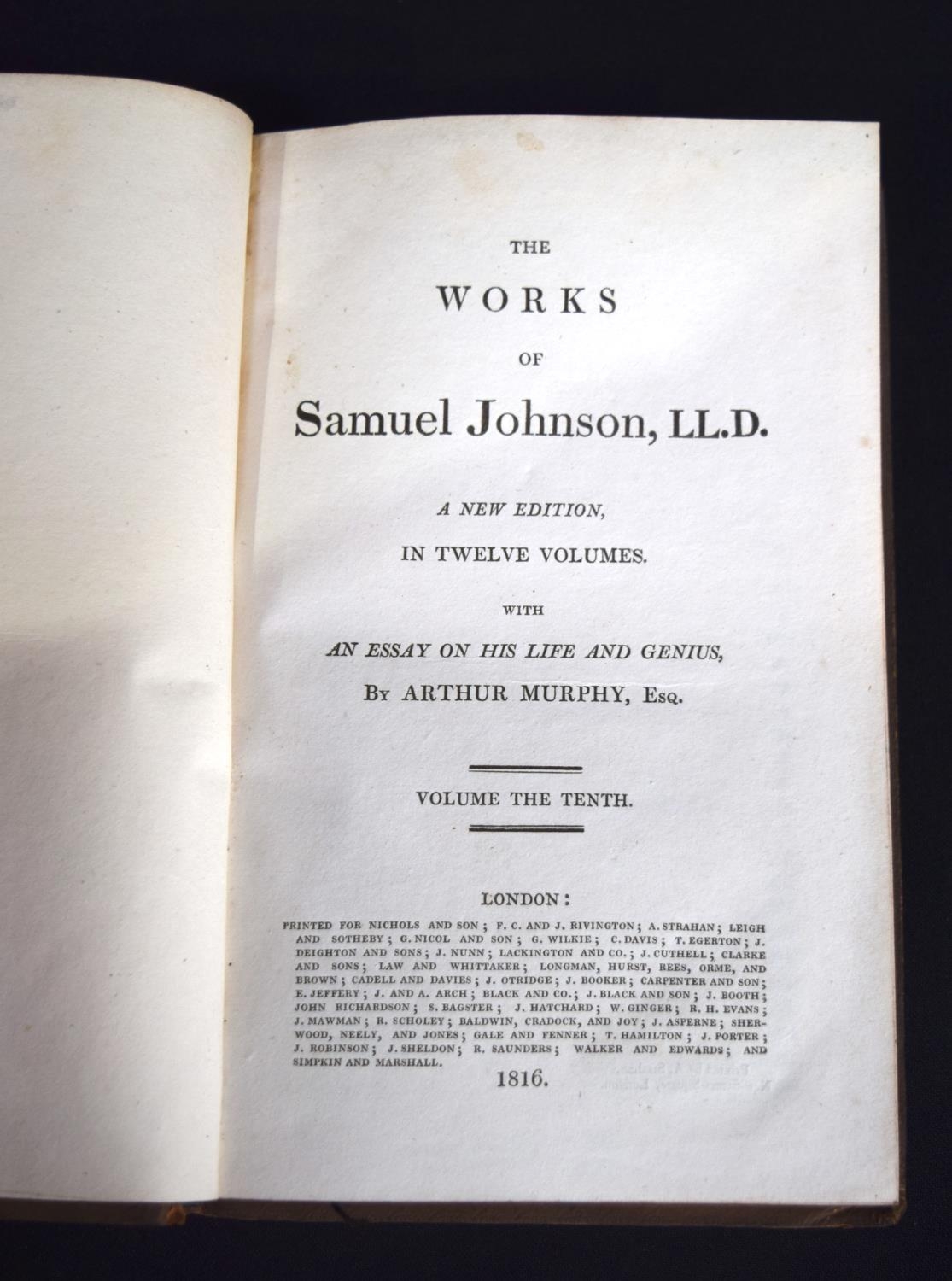 Collection of Books seven volumes of The works of Samuel Johnson printed 1816 together with Four volumes of the Spectator printed 1723 21 x 14cm (1)