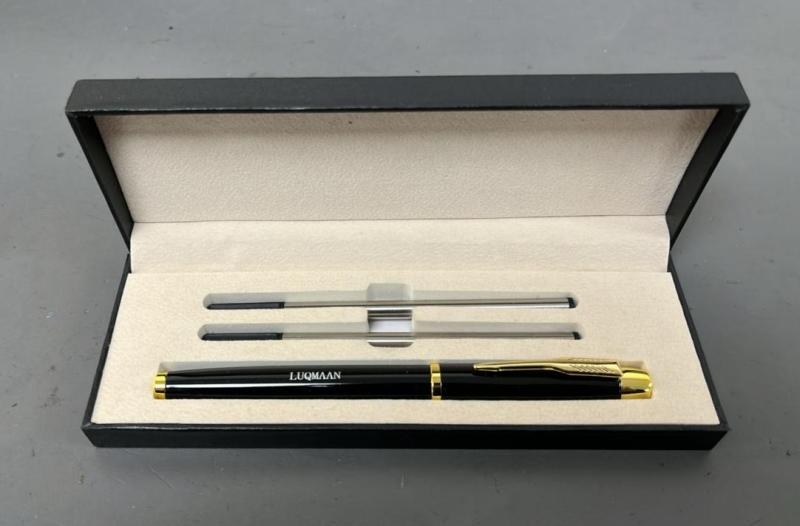 X1 BRAND NEW PEN LUQMAAN BALLPOINT WITH GOLD TONED TRIM WITH 2 REFILS + GIFT BOX