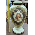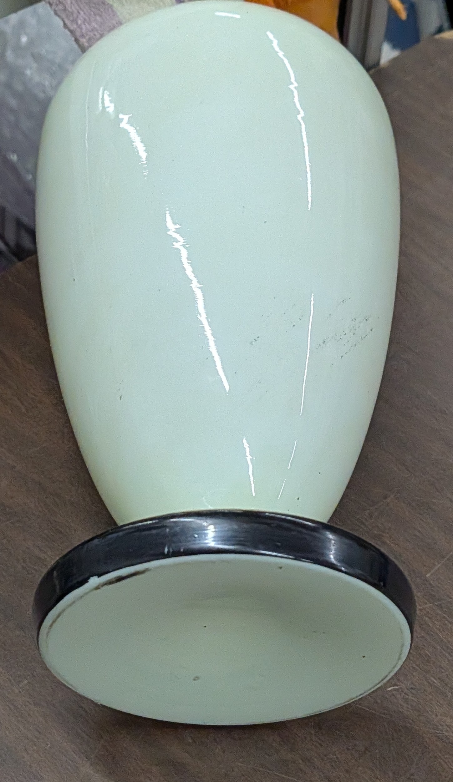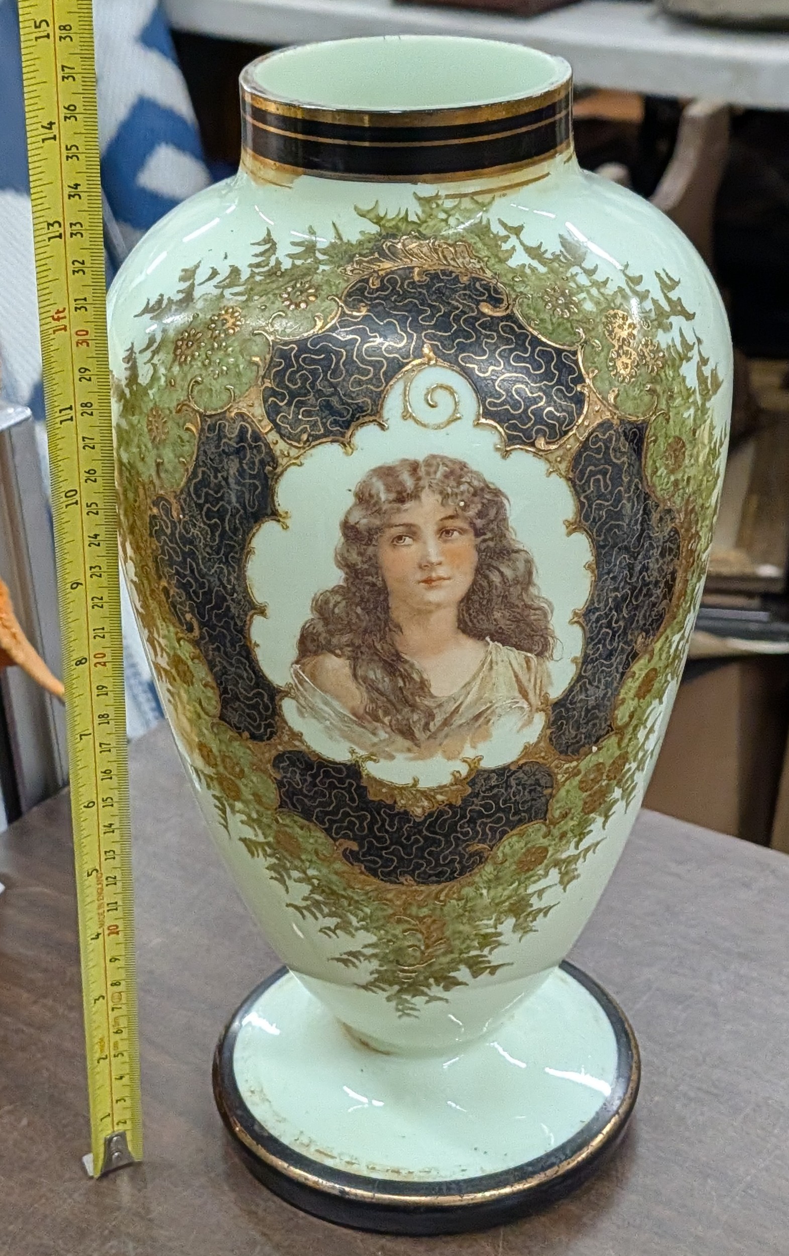 14" Large Victorian Opaque Green Glass Portrait Vase