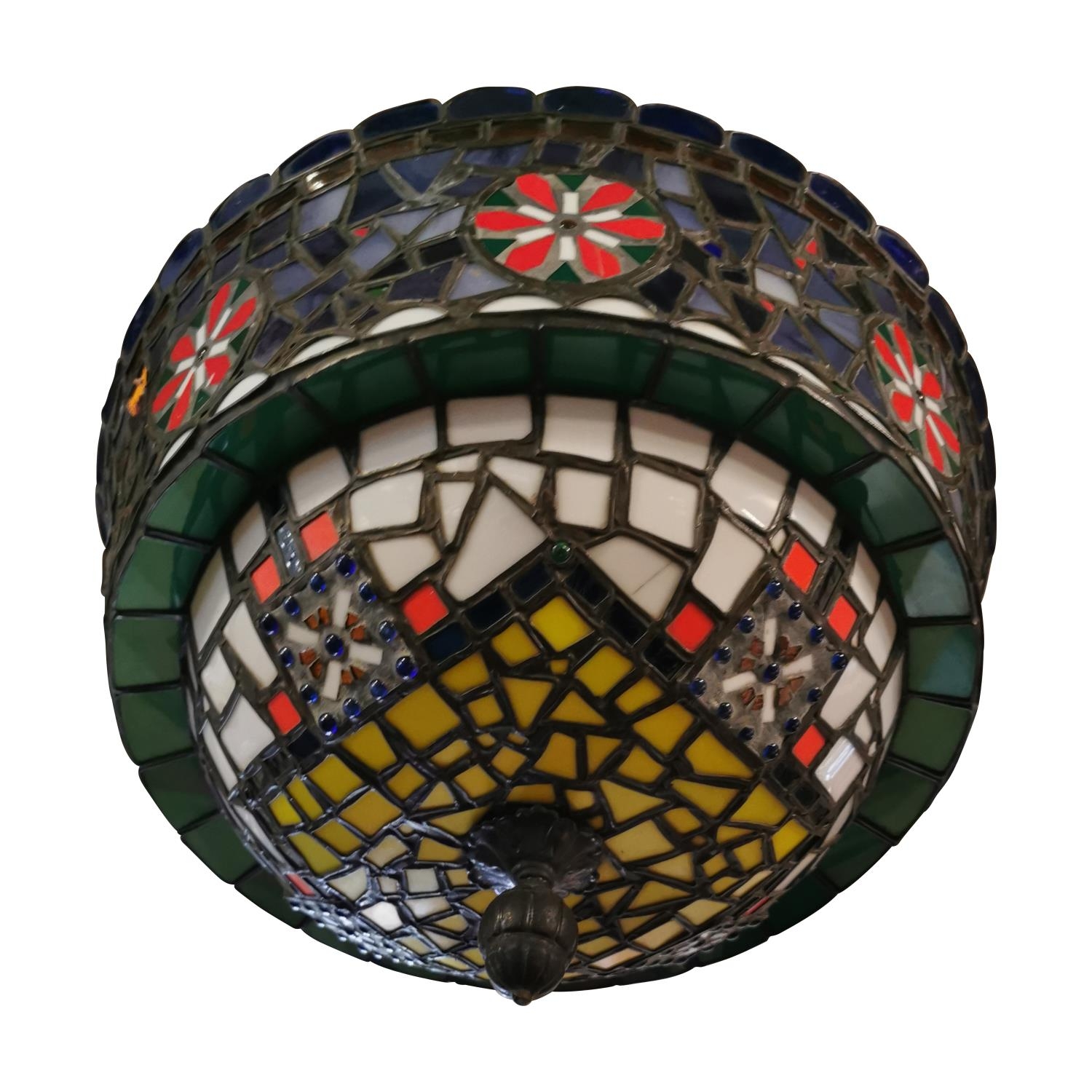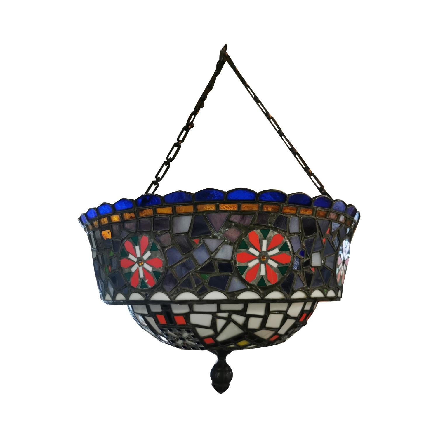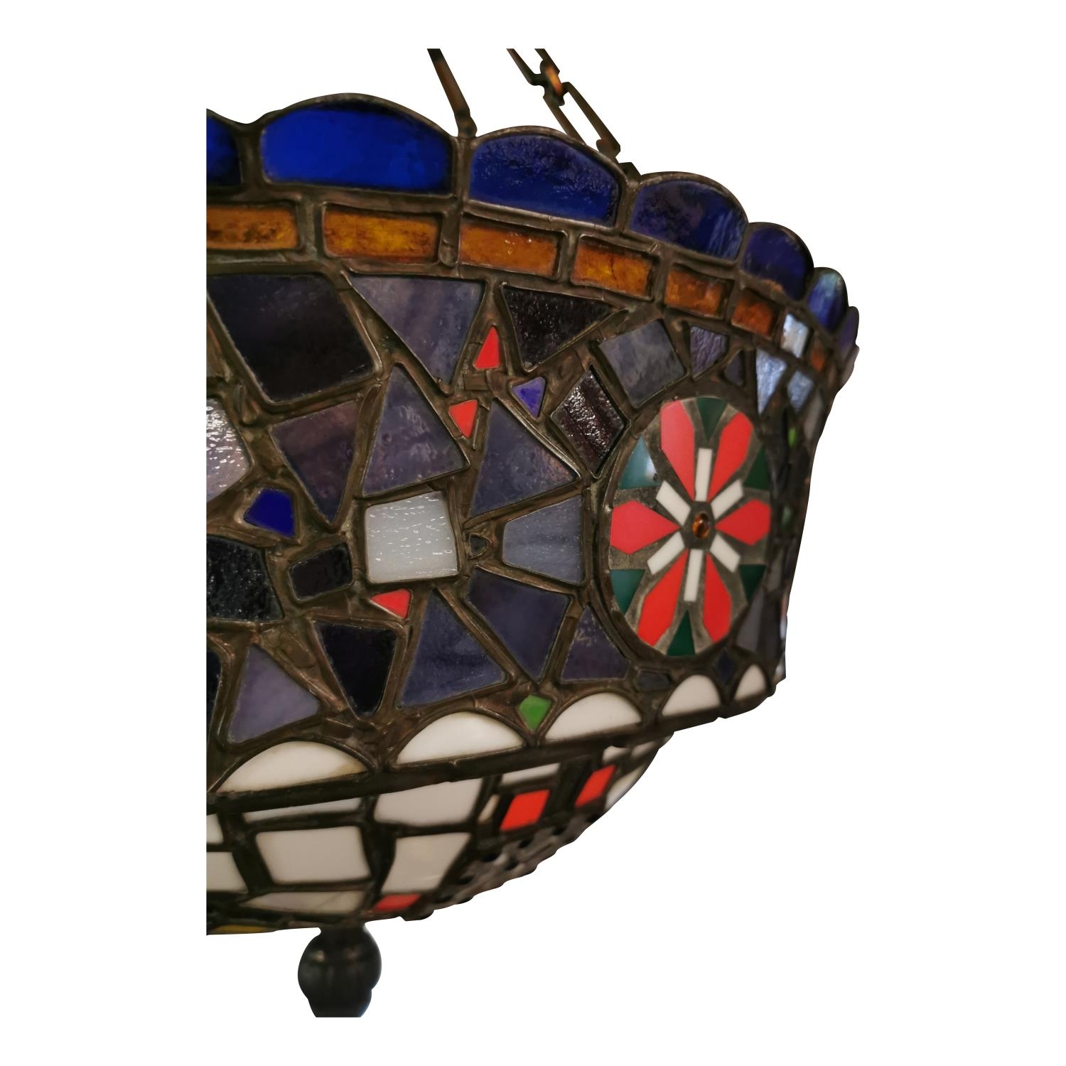 Edwardian decorative leaded ceiling light in the Tiffany style {Drop 65 cm H x 39 cm Dia.}.