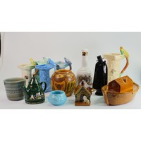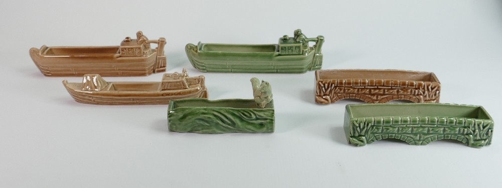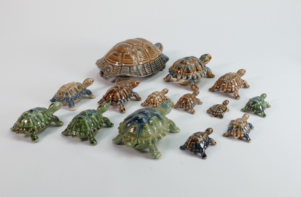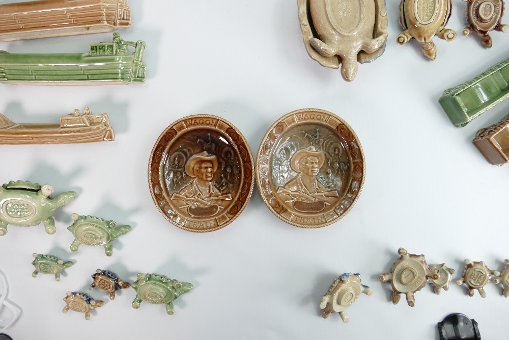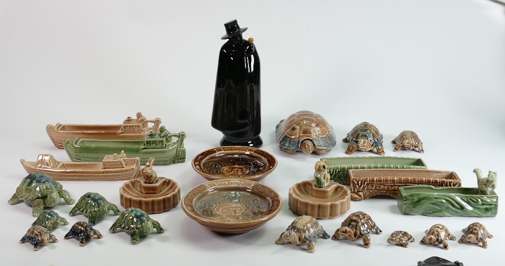 A collection of Wade pottery: Including barge dishes, Tortoises in different sizes and colours, Sandman's Port flask etc. (28 items)