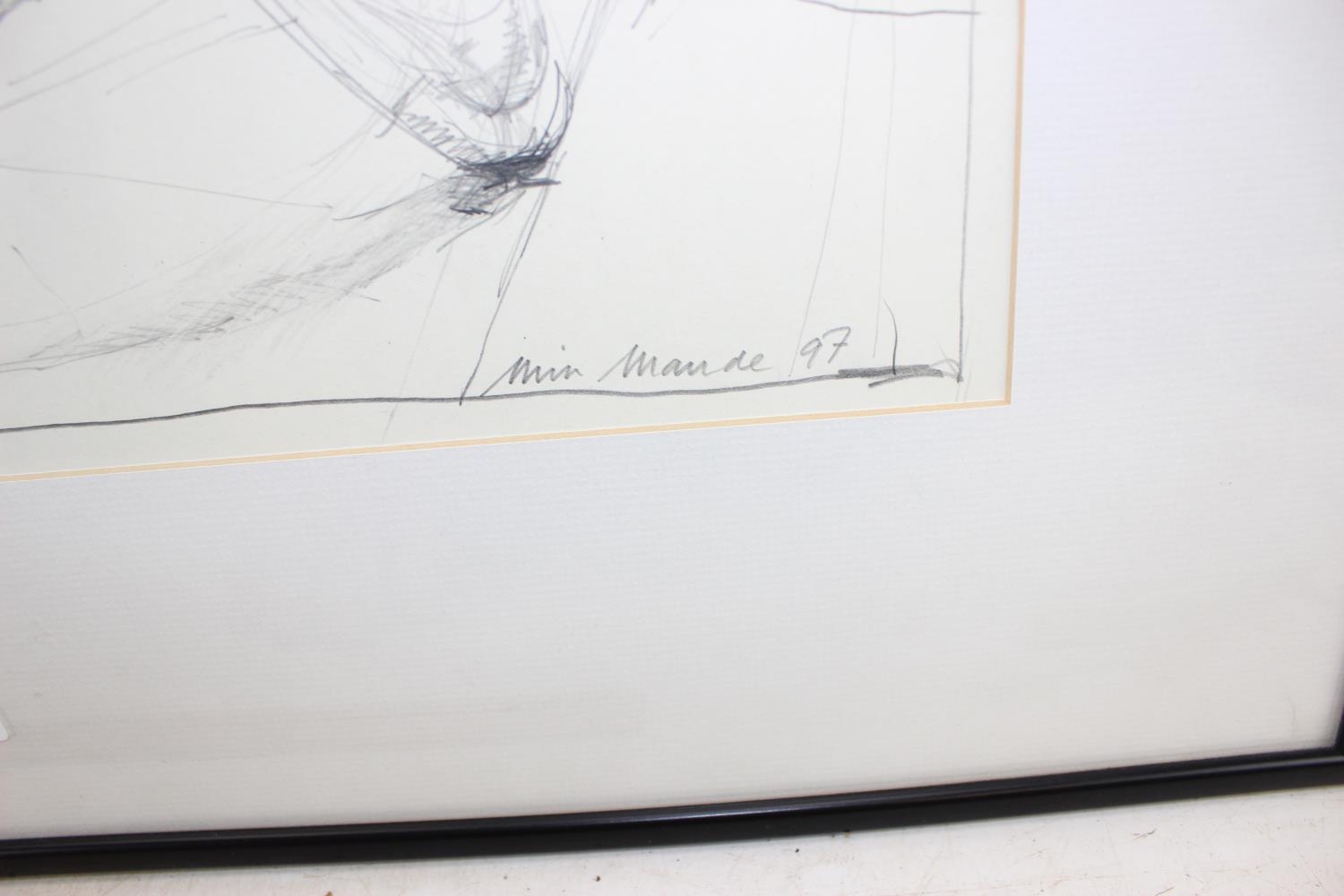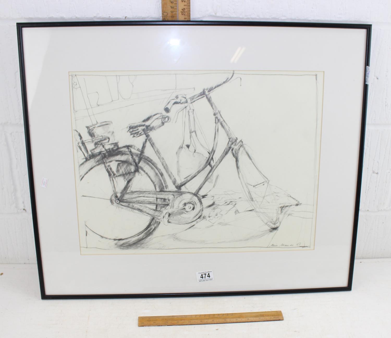 A late 20th century pencil drawing of a bicycle, indistinctly signed lower right