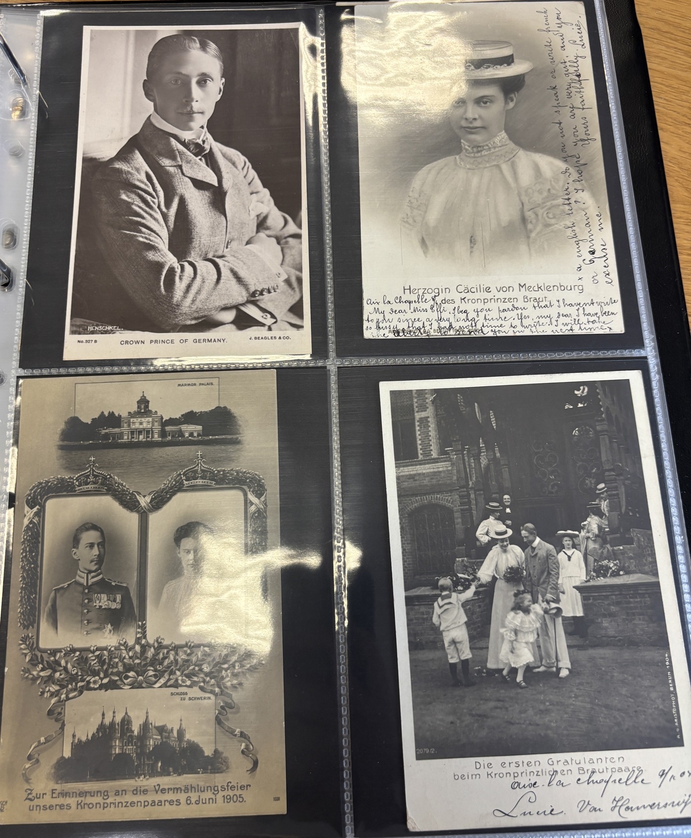 Royalty. Germany. Coln. in 2 modern albums with slipcases, incl. artist drawn, ptd and R.P's with Willhelm II in exile, crown-prince Willhelm of Prussia, Family portraits, commemorative and memorial cards. Qty. 545. (2V)