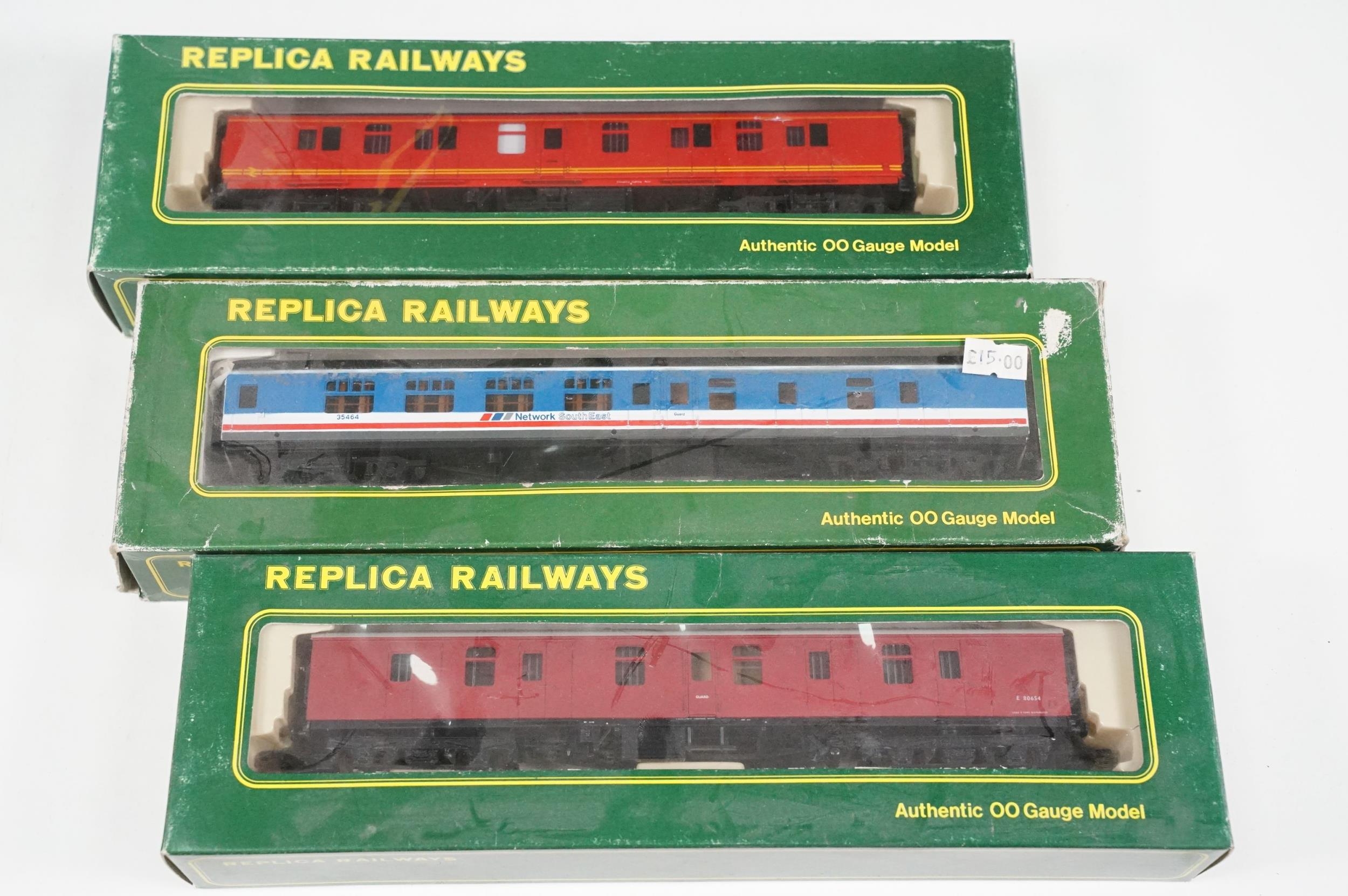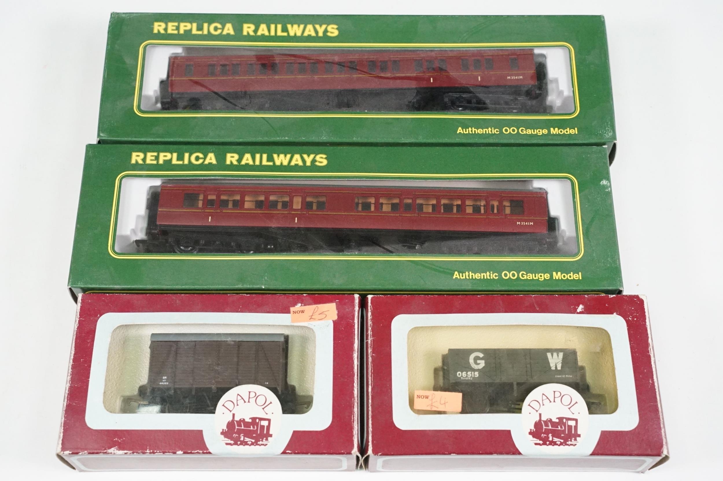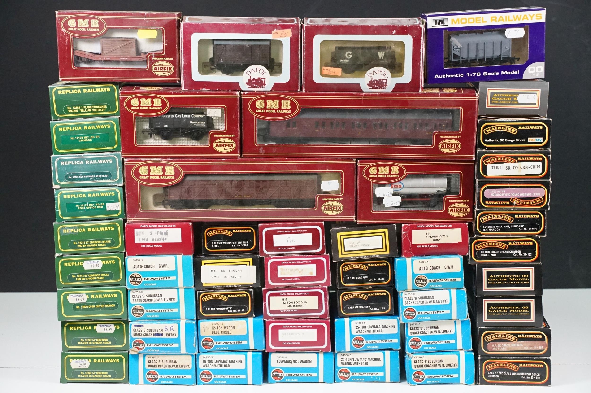49 Boxed OO gauge items of rolling stock to include 17 x Airfix, 9 x Replica Railways, 11 x Palitoy Mainline, and 12 x Dapol featuring coaches, wagons and vans