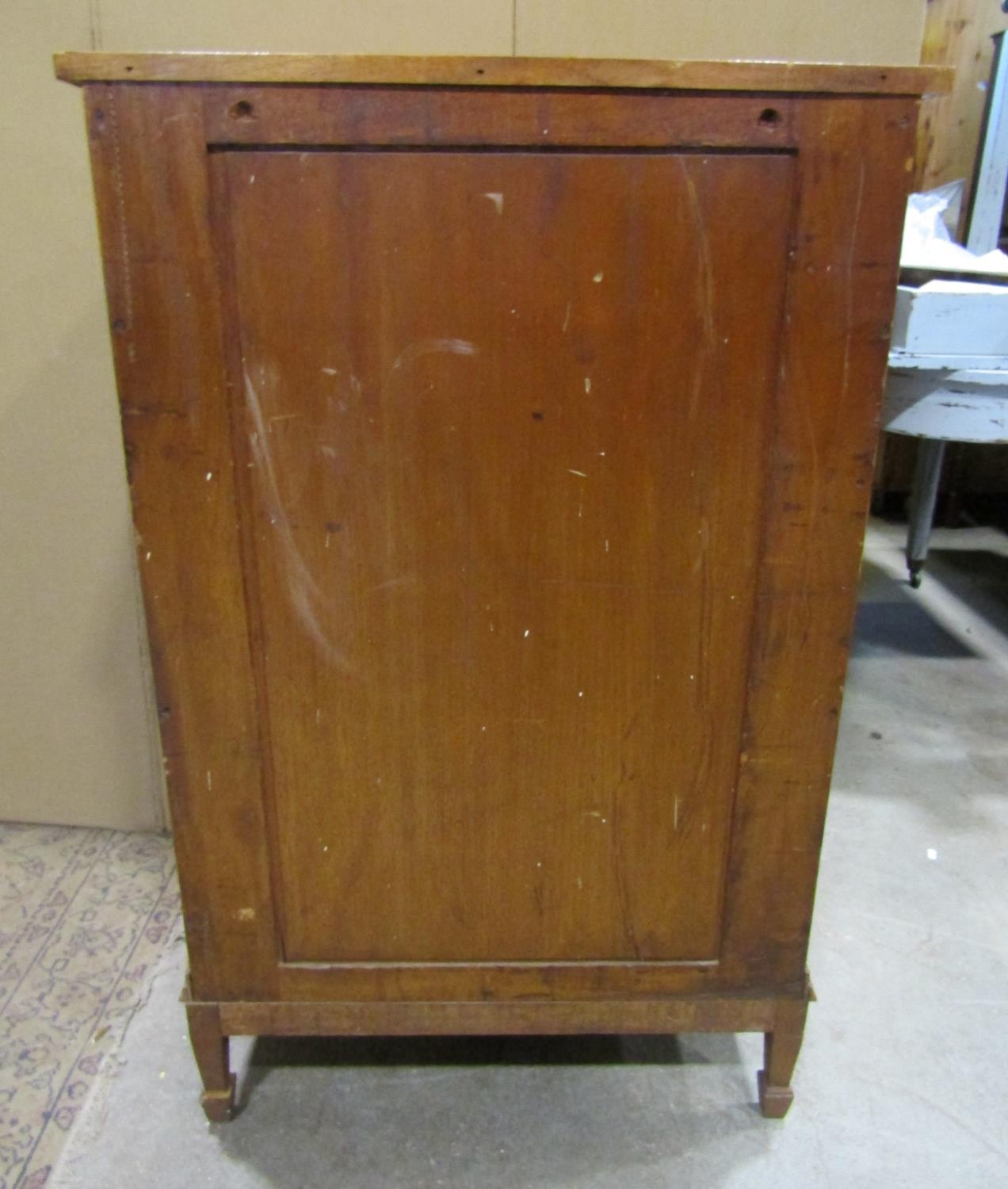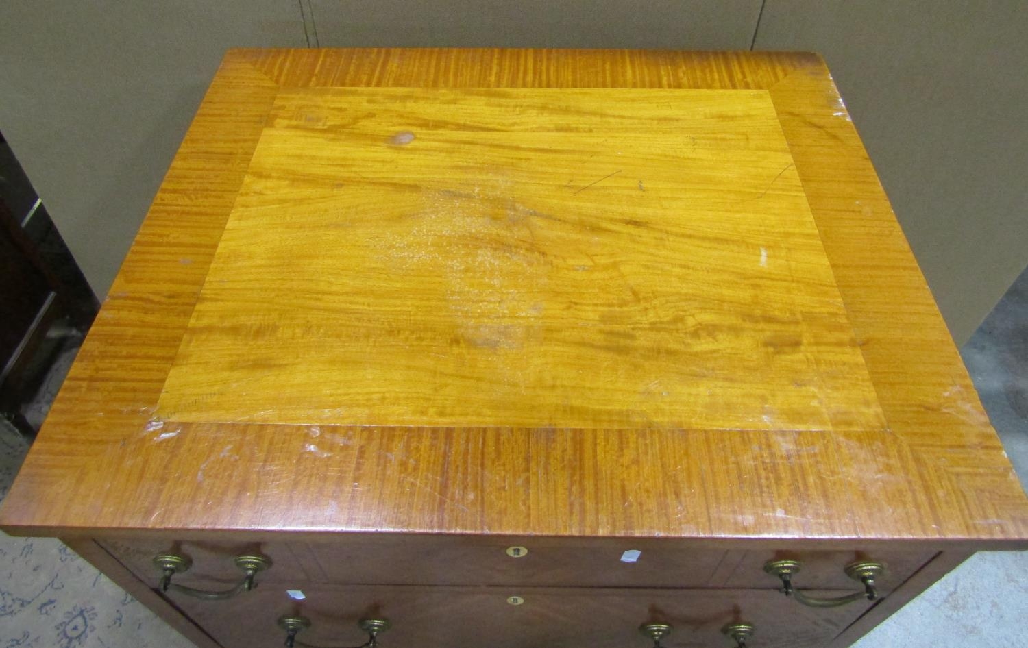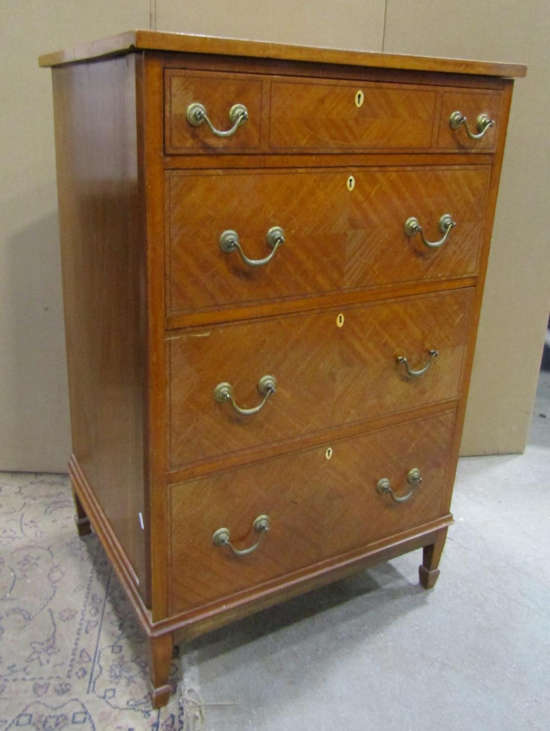 An Edwardian satin wood tower of four long drawers with brass plate handles on square cut supports, 70cm wide