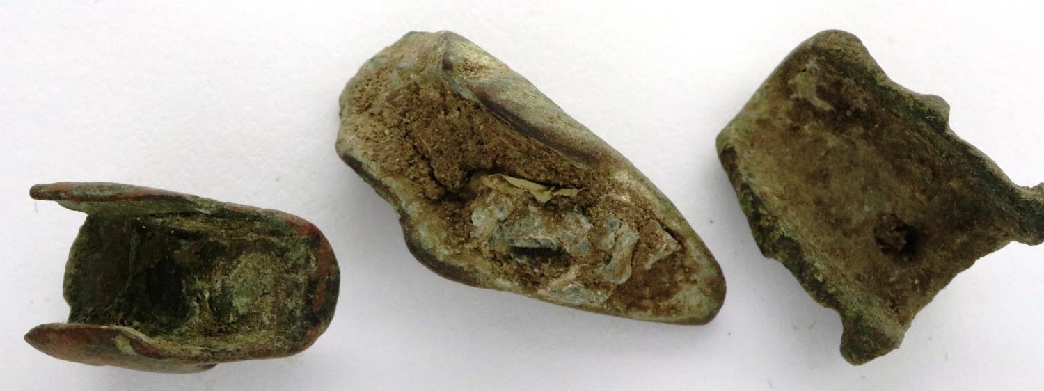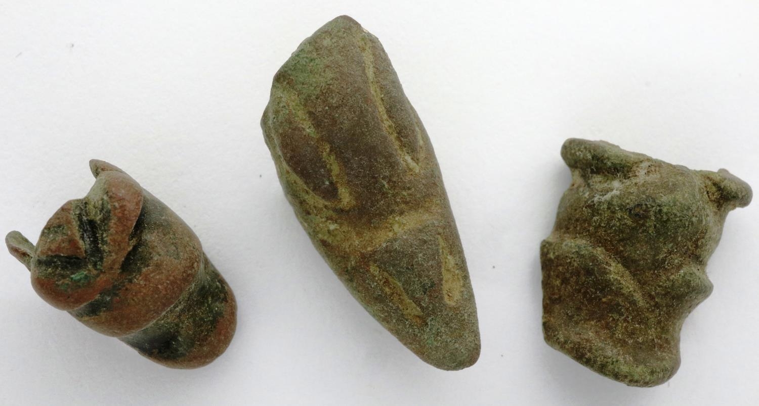 Three Roman bronze animal head toys/ornaments, dog/pig/goose, early 3rd century, L: 20 mm. P&P Group 0 (£5+VAT for the first lot and £1+VAT for subsequent lots)