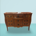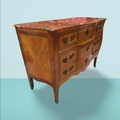 19th C. French kingwood commode with marble top on shaped tapered legs. {85 cm H x 124 cm W x 56 cm D}. NOT AVAILABLE TO VIEW IN PERSON.