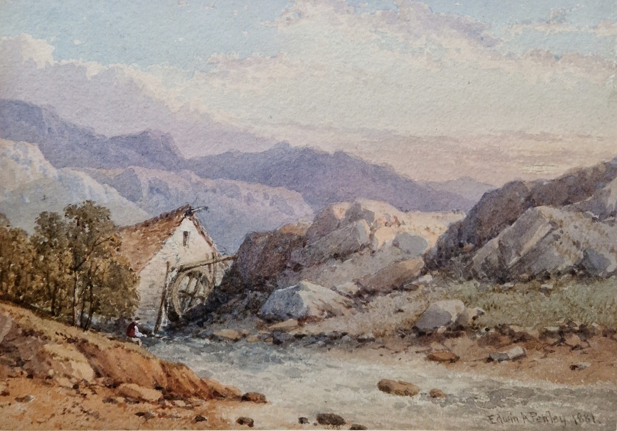Nant Mill, North Wales, signed and dated 1881 lower right, 13.5 cm x 19 cm