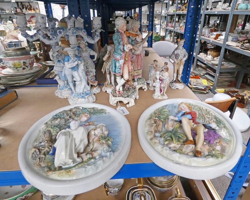 SELECTION OF VARIOUS CONTINENTAL PORCELAIN FIGURES AND WALL PLAQUES