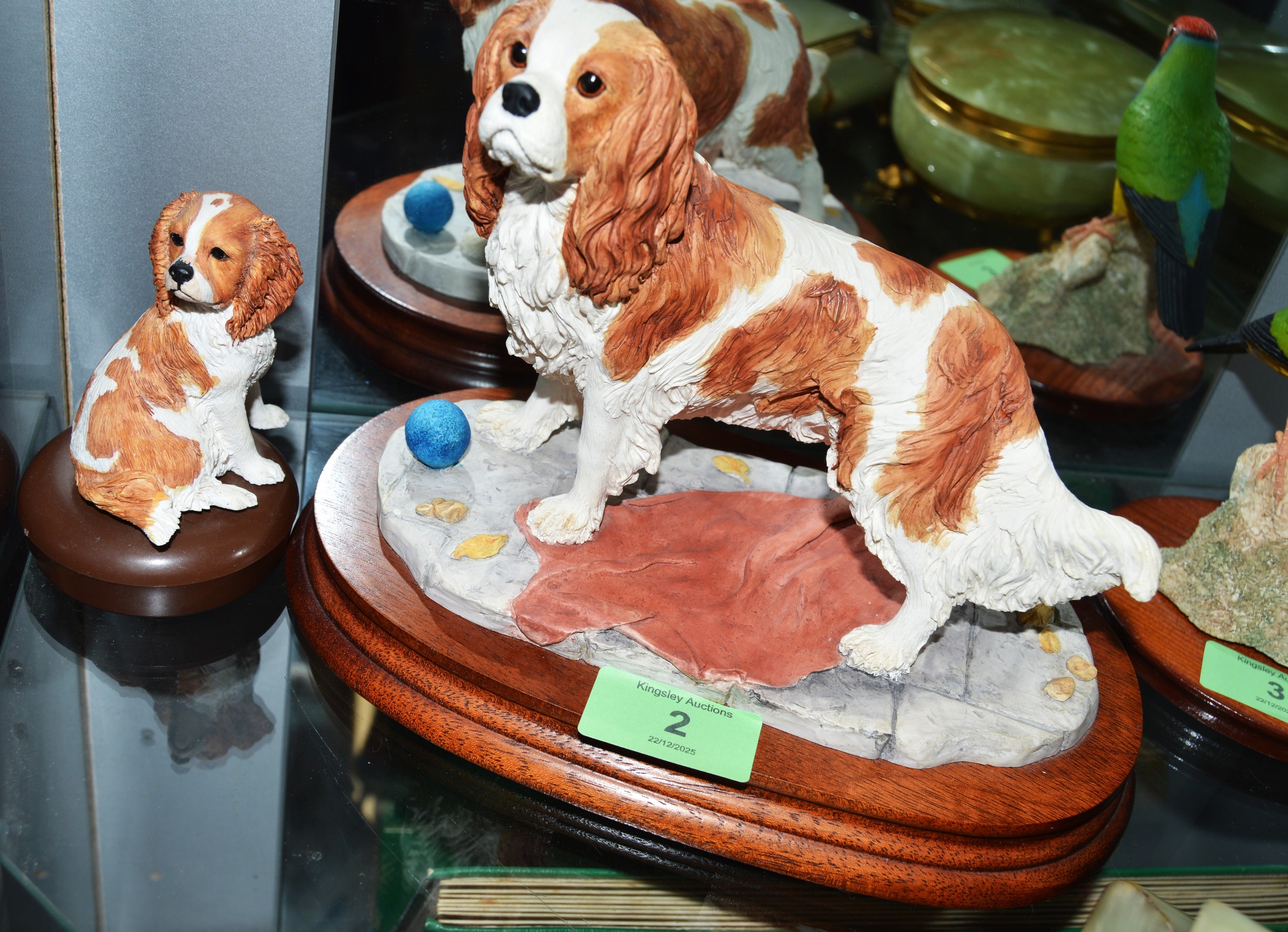 A Border Fine Arts Figural of a King Charles Cavalier Spaniel on Plinth - approx 7" High, Plus One Other Smaller