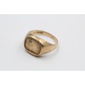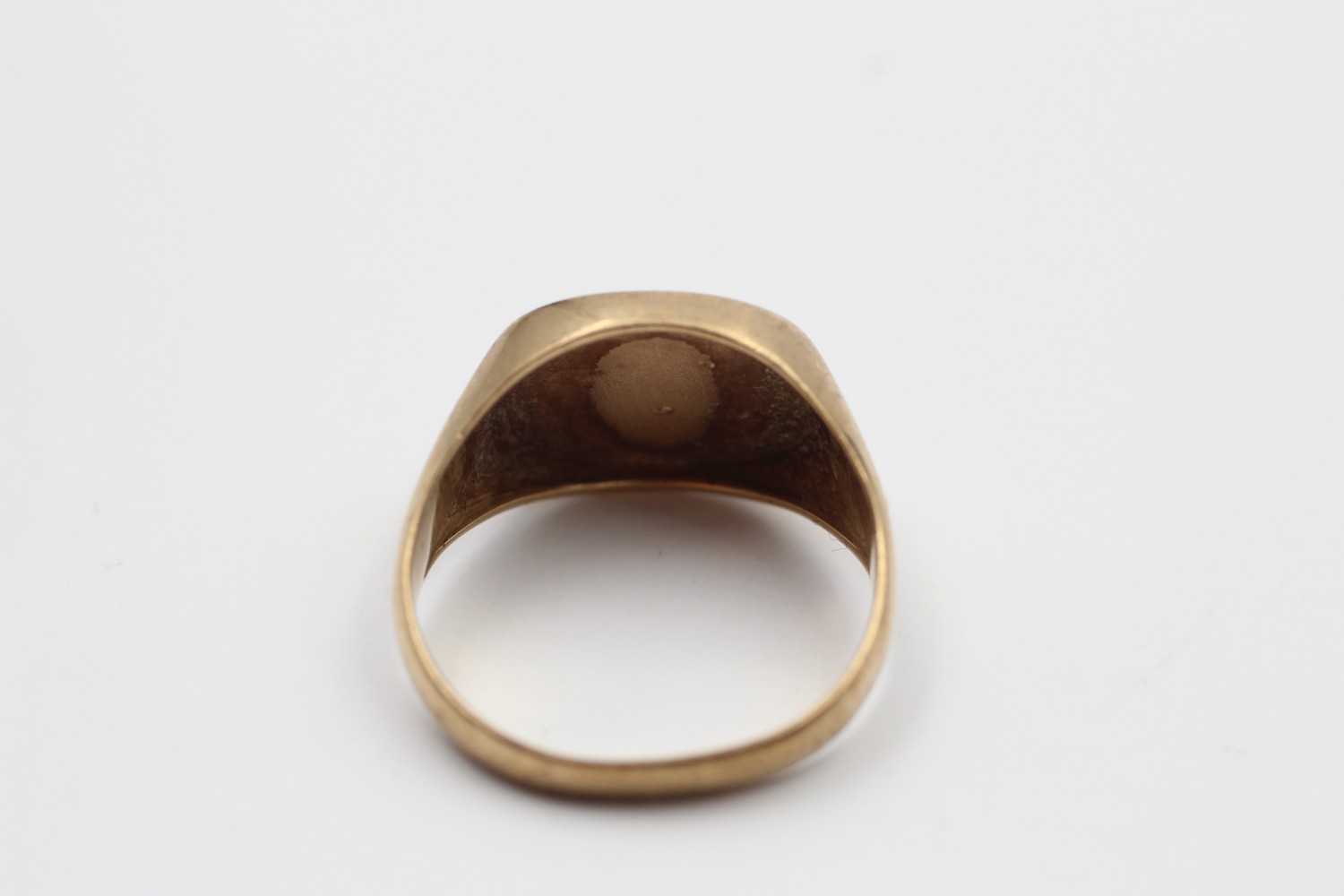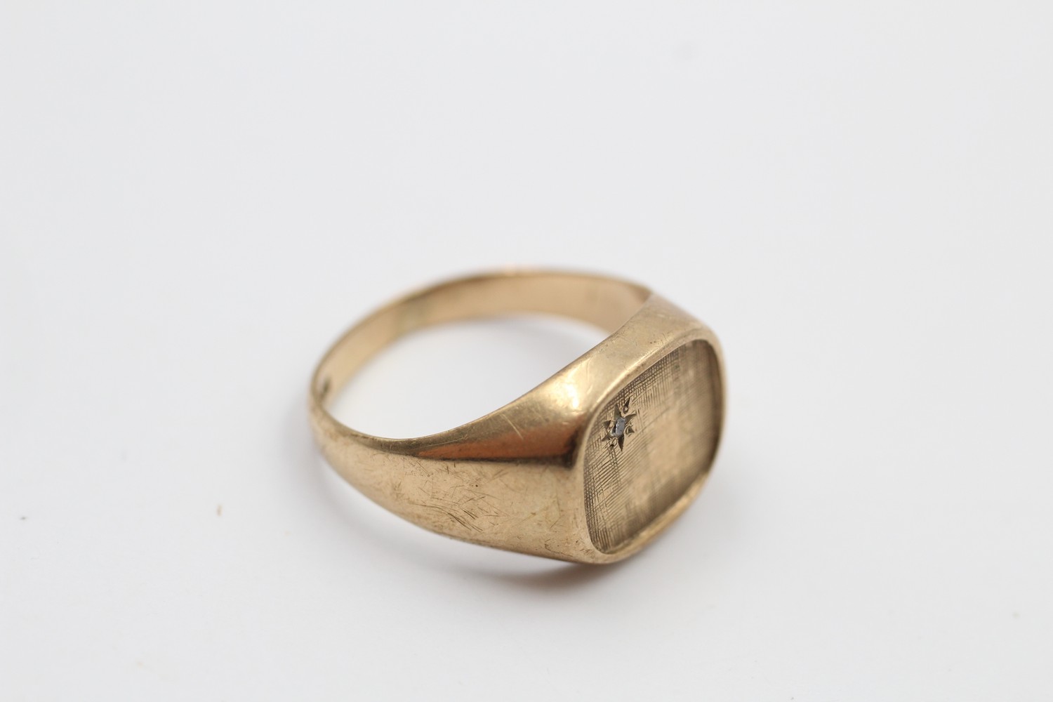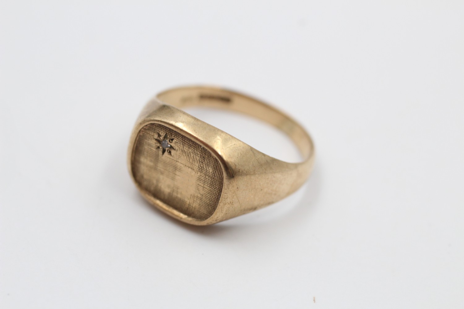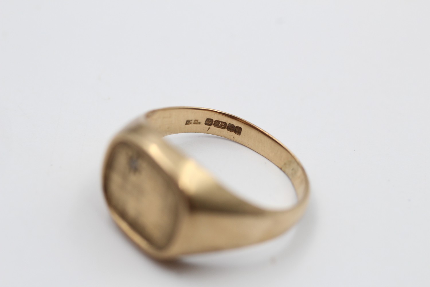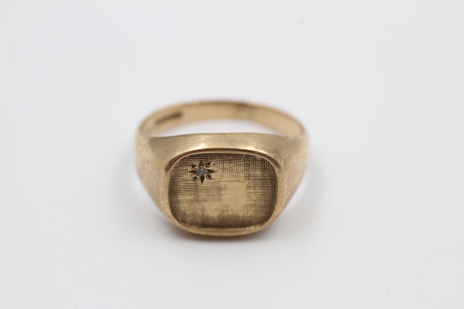 9ct gold diamond rounded rectangle gold textured signet ring 3.8g SIZE P