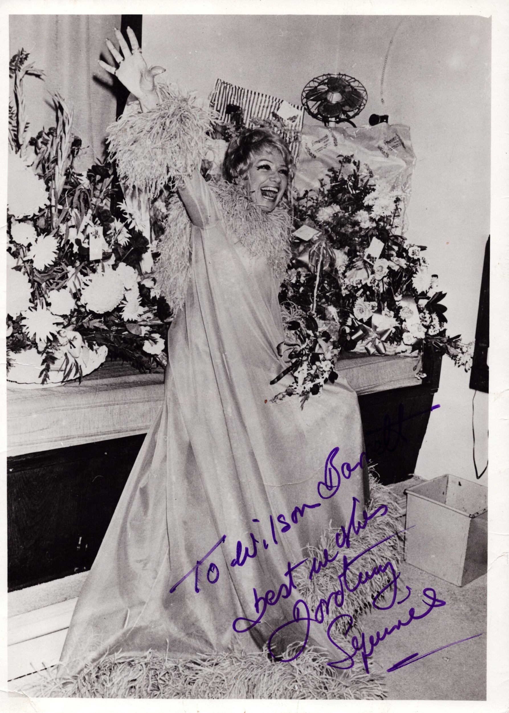 Dorothy Squires signed 10x8inch black and white photo. Dedicated.