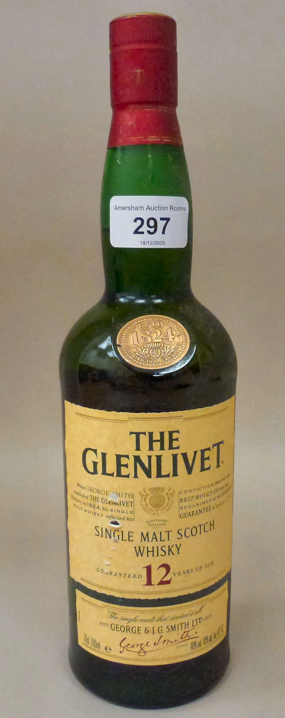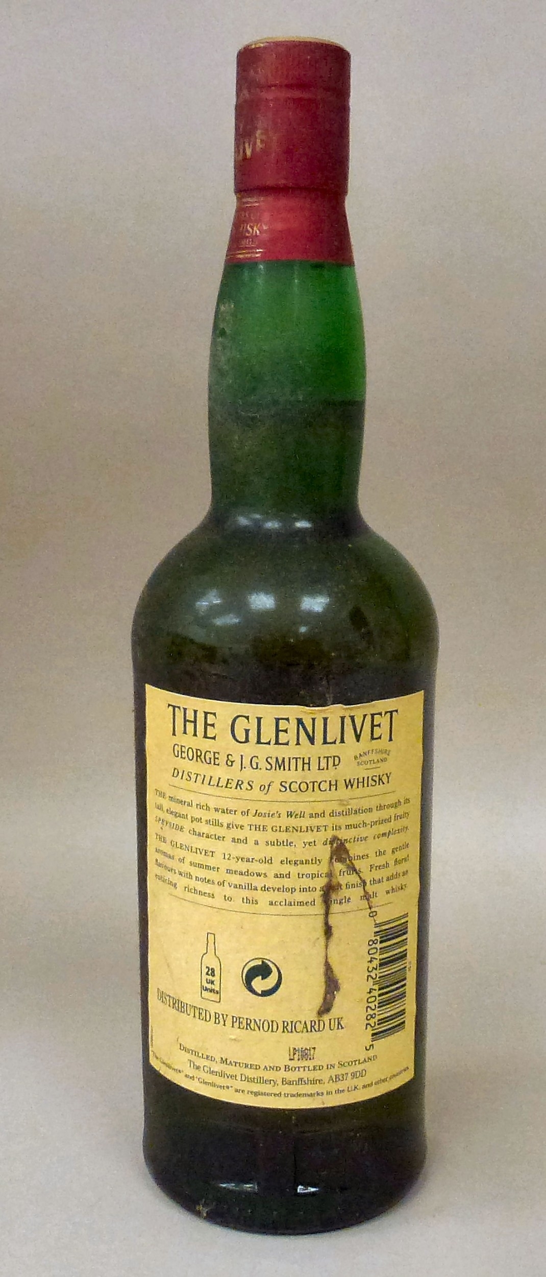A bottle of The Glenlivet 12 year single malt Scotch whisky