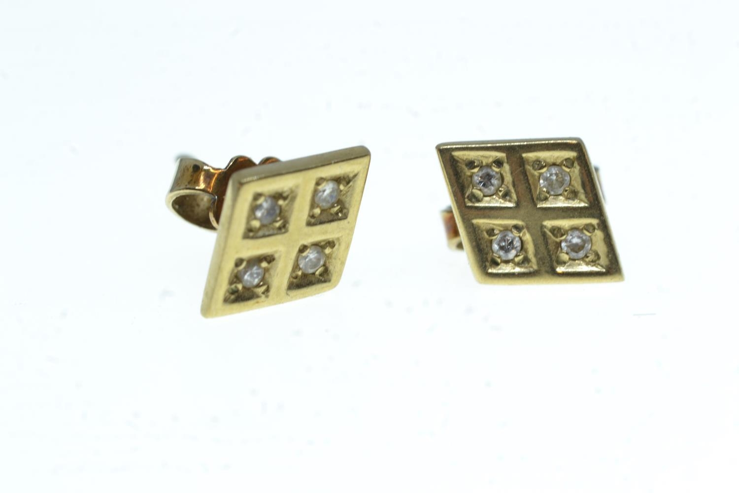 Pair of 9ct gold & diamond ear studs of diamond shape, gross weight 1.76 grams
