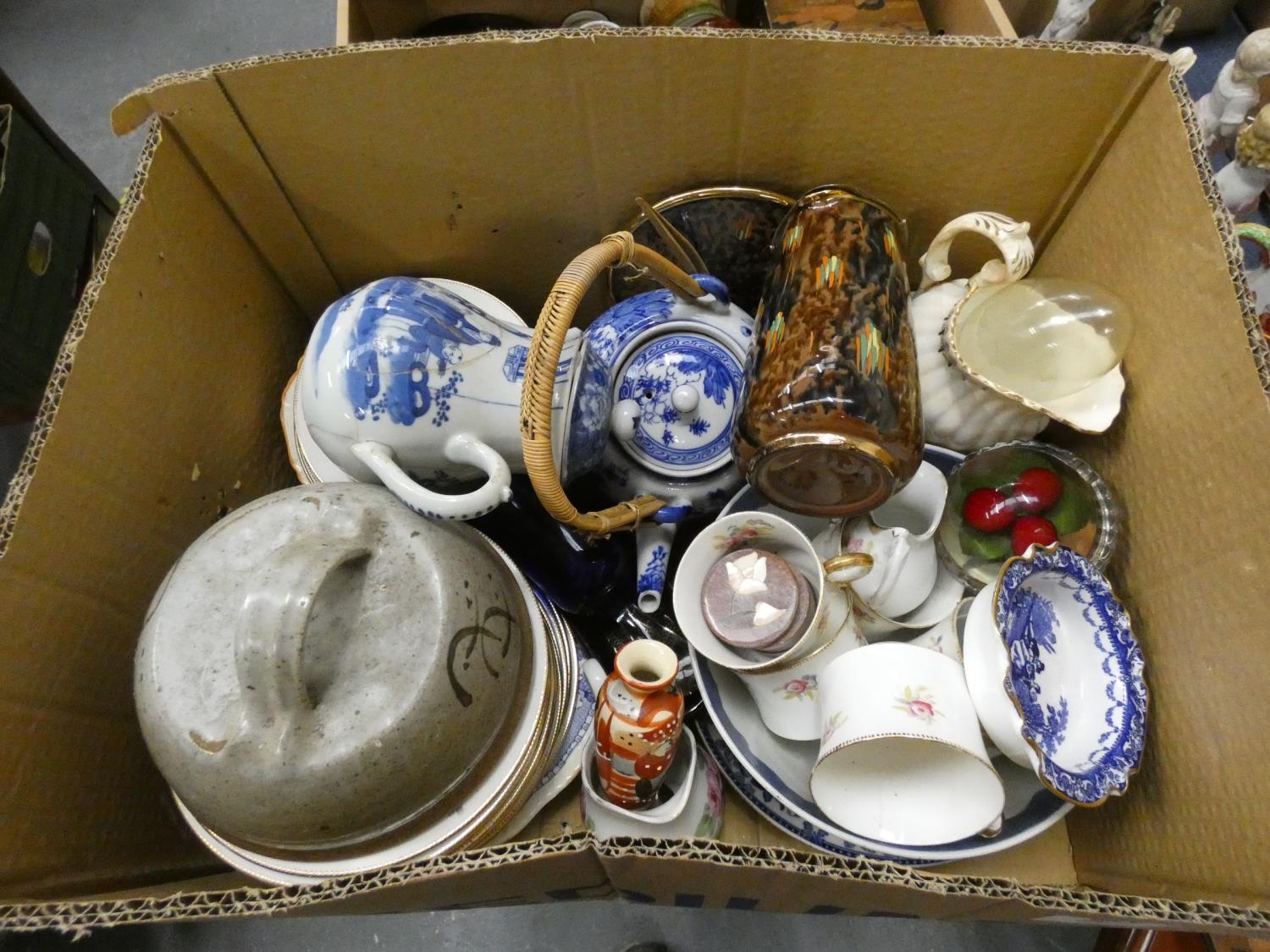 Box of miscellaneous household items to include vases, crockery, etc.