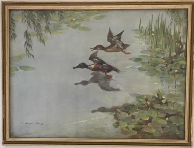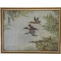 A print on board by Vernon Ward - Flying Ducks.Framed dimensions(cm) H22 W30