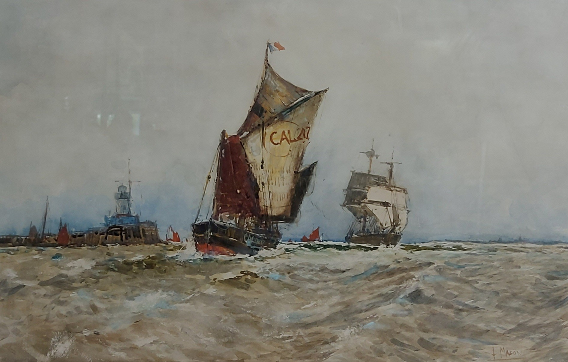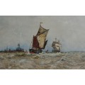 Frank Henry Mason, marine scene with shipping in a stormy sea off a coast, signed, 31cms x 49cms