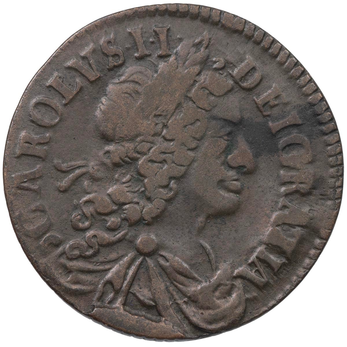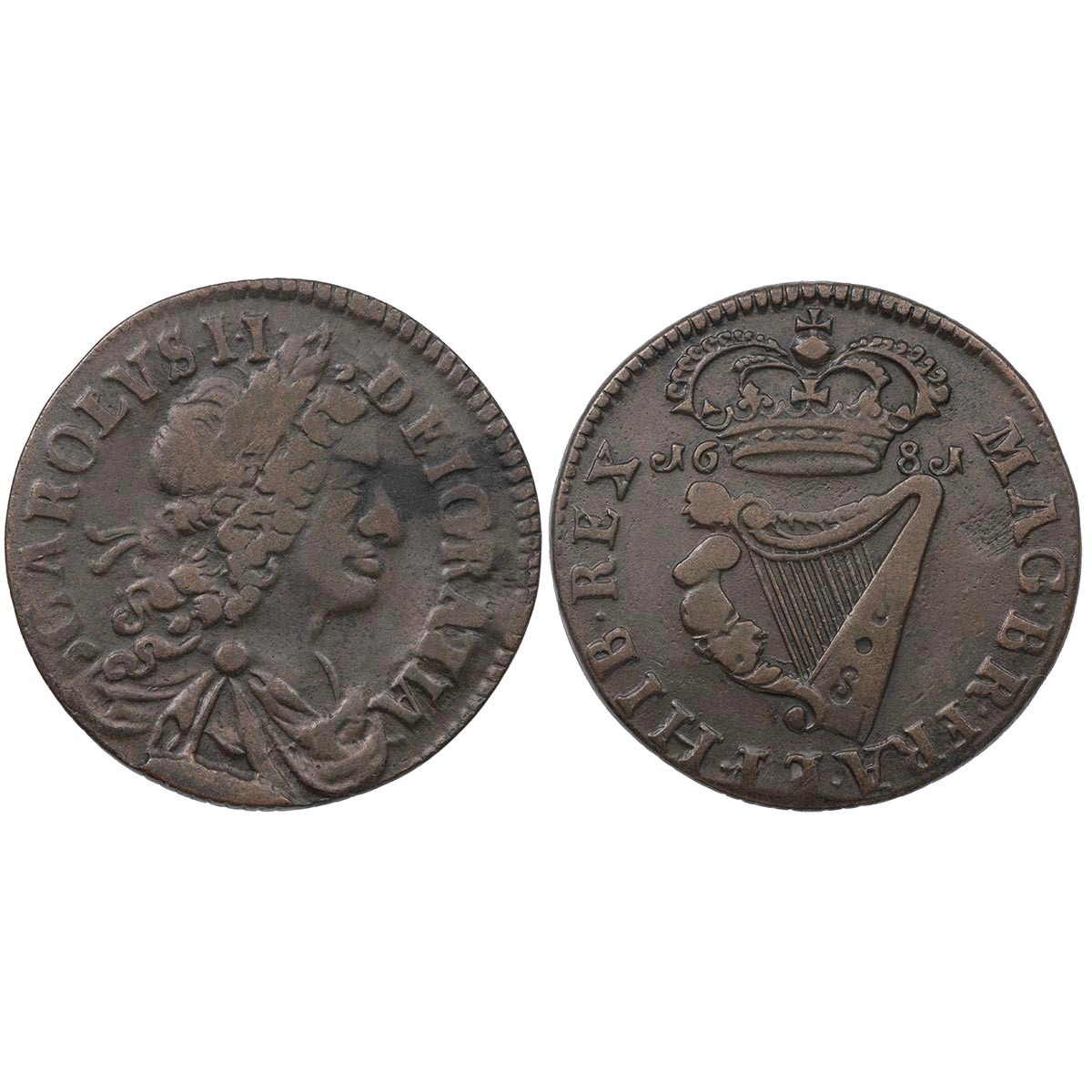 Ireland, 1681 Charles II Halfpenny, large lettering (S 6574), 6.68g, good Fine.