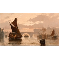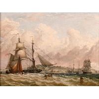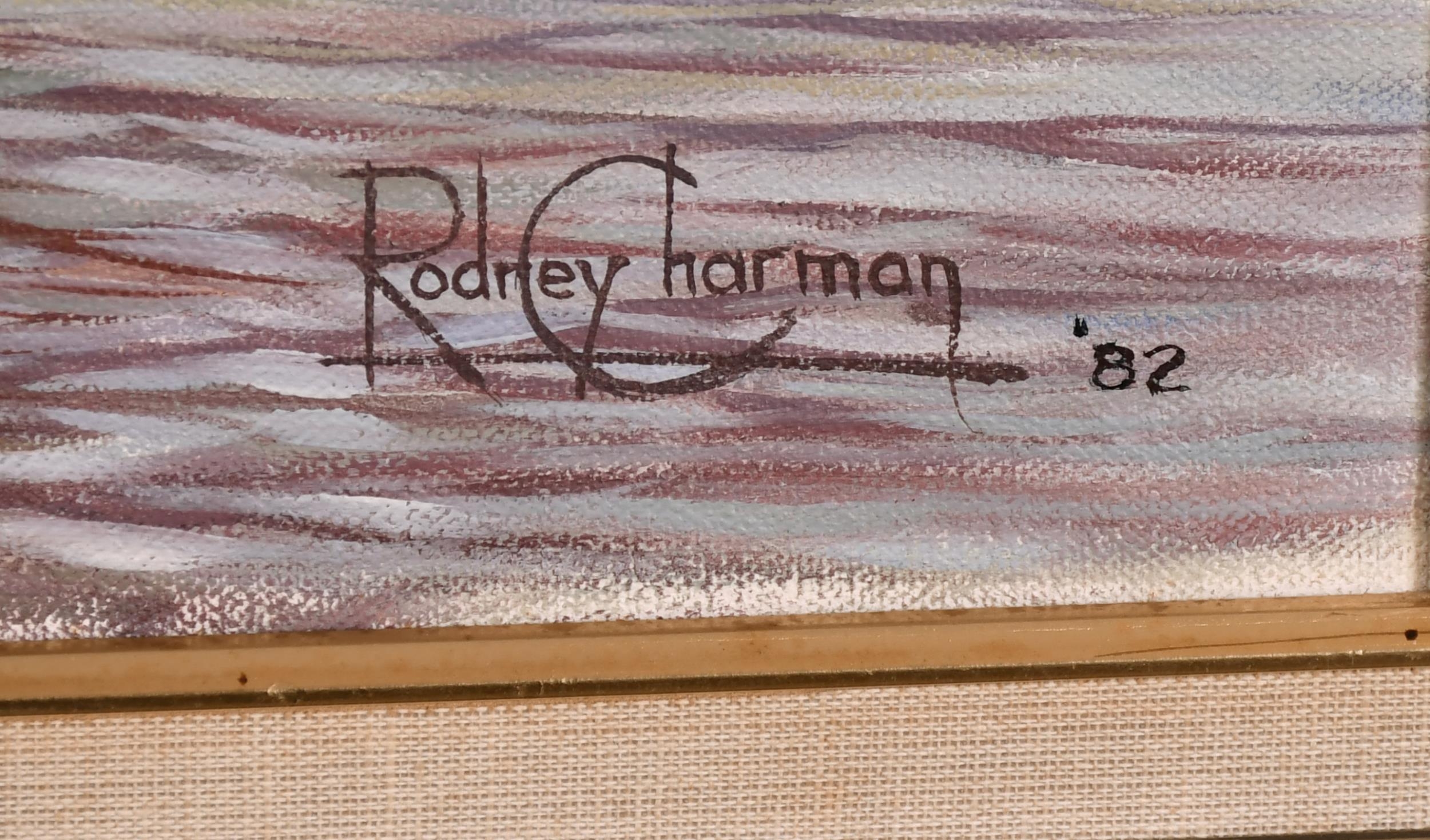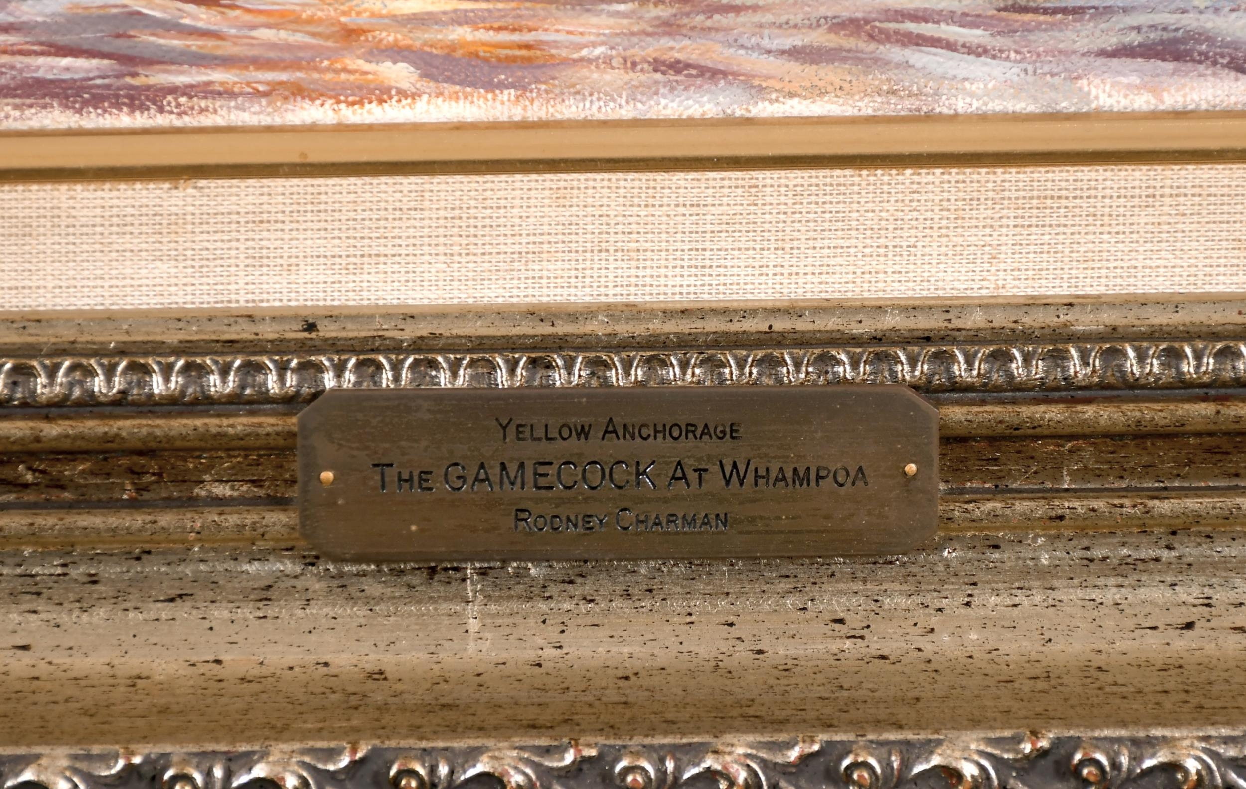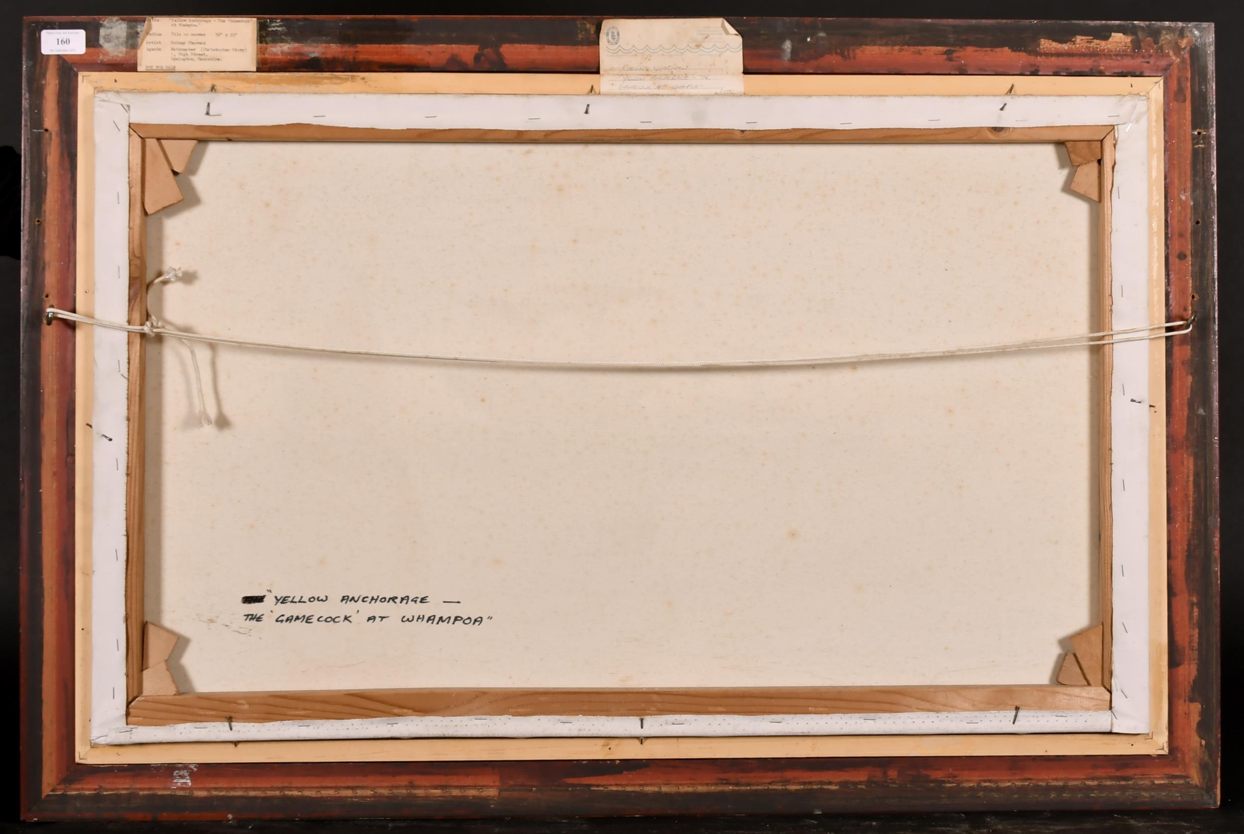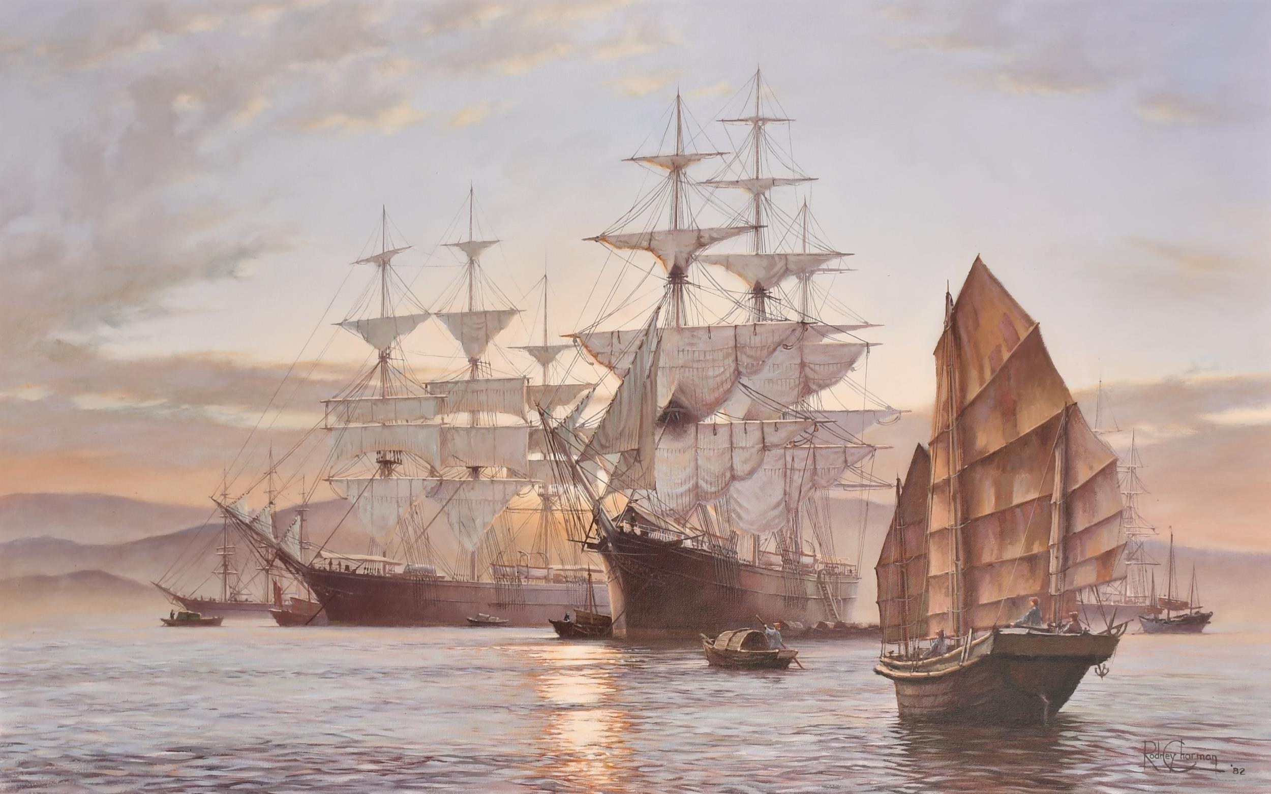 Rodney John Keith Charman (1944- ) British. "Yellow Anchorage, The Gamecock at Whampoa", Oil on Canvas, Signed and Dated '82, and Inscribed verso and Inscribed on two labels verso, 22" x 36" (55.8 x 91.5cm)