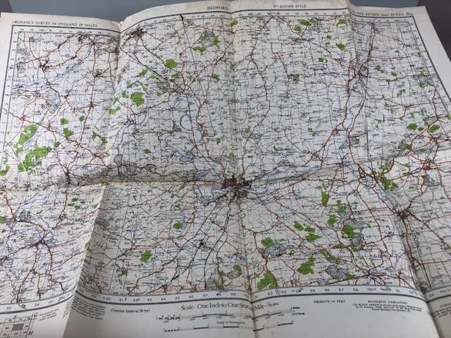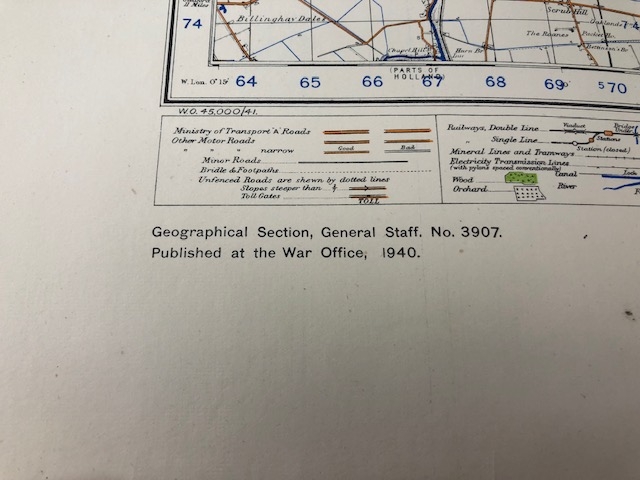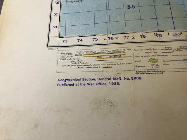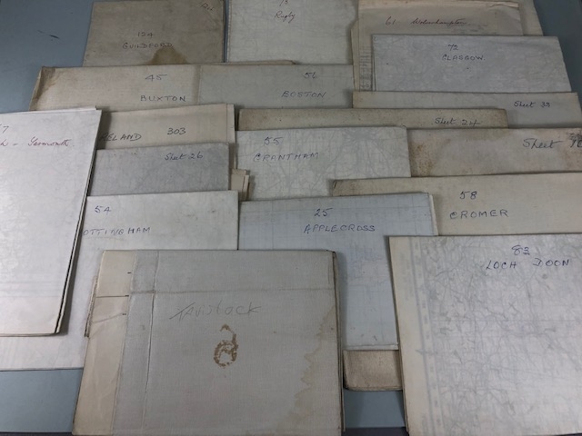 WW2 military interest, a collection of over 100 official War department maps covering most of the British Isles ranging in dates from 1937-1945 All A.F and a name plaque for Lt Col Watts The Suffolk regiment.