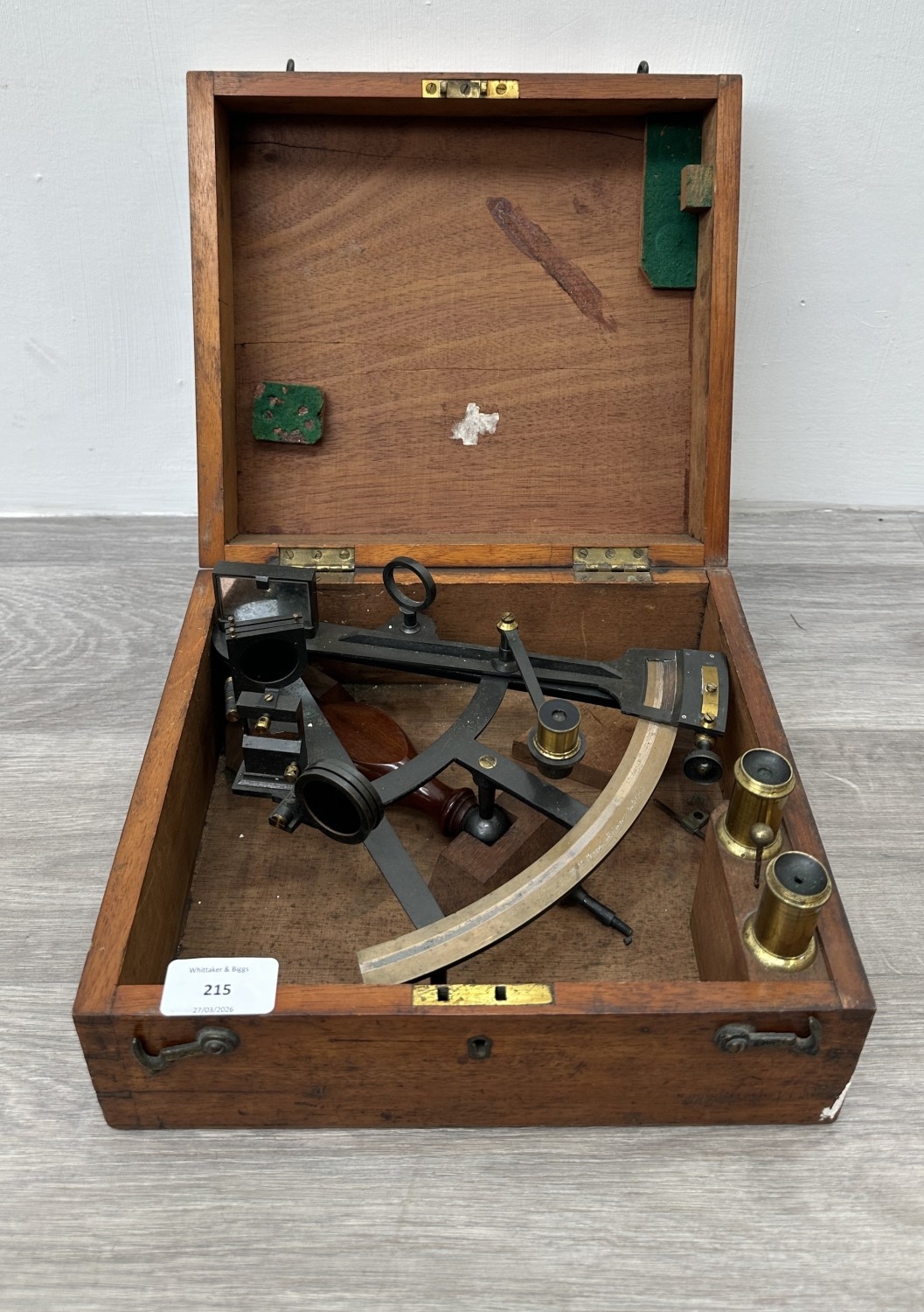 An early 20th century mahogany cased maritime sextant signed W.T Parrott St. Andrew Dock Hull - case approx. 12cm high x 27cm wide x 25cm deep