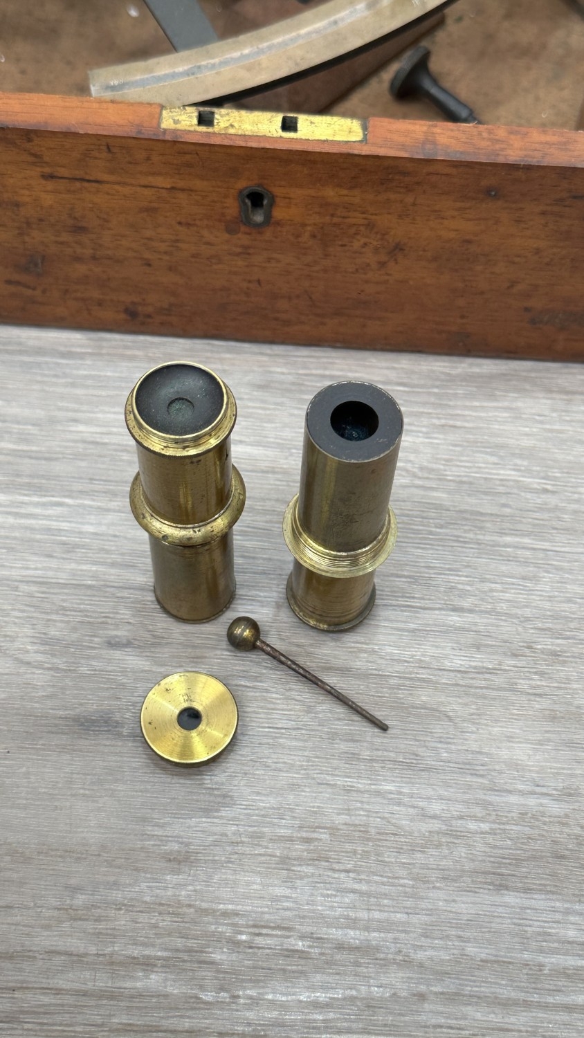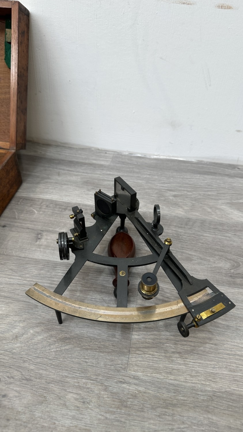 The case is heavily worn and shows various scratches, scuffs and splits and the sextant shows signs of age related wear including mould to lenses, corrosion to metal and one lens is missing.