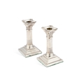 A PAIR OF EDWARDIAN SILVER CORINTHIAN COLUMN CANDLESTICKS