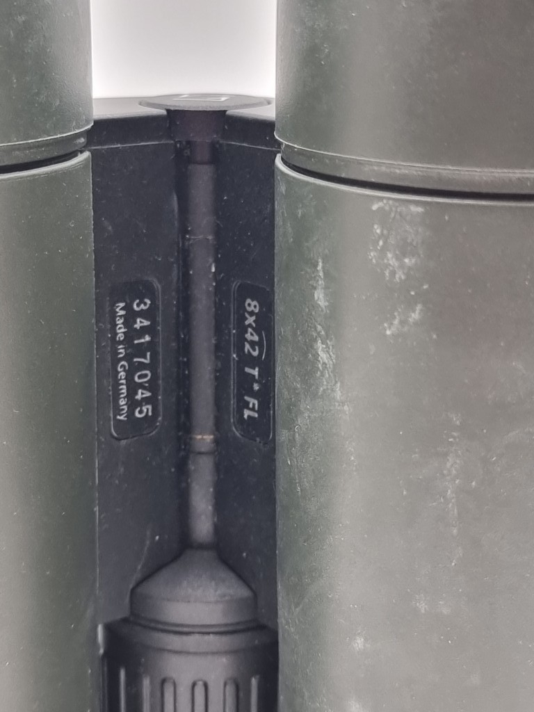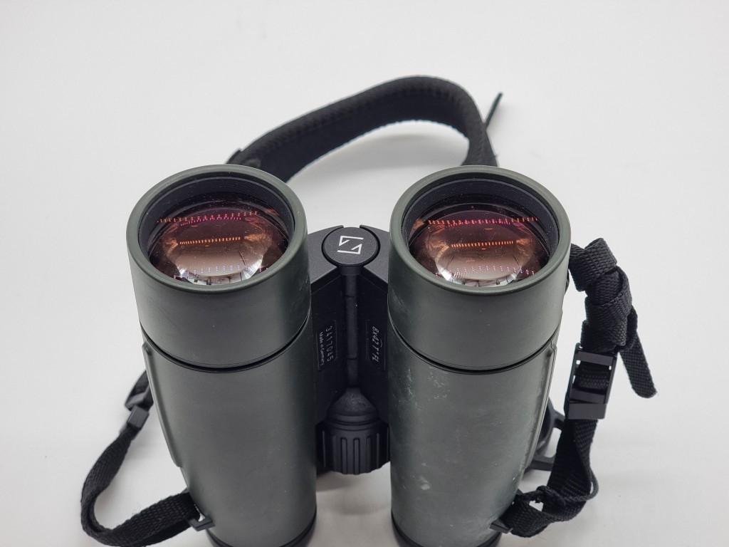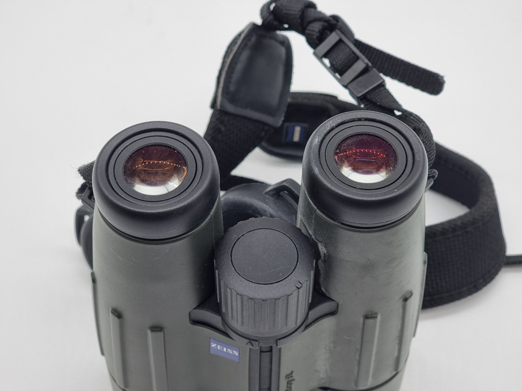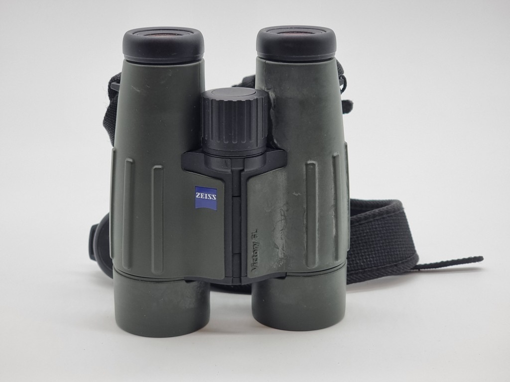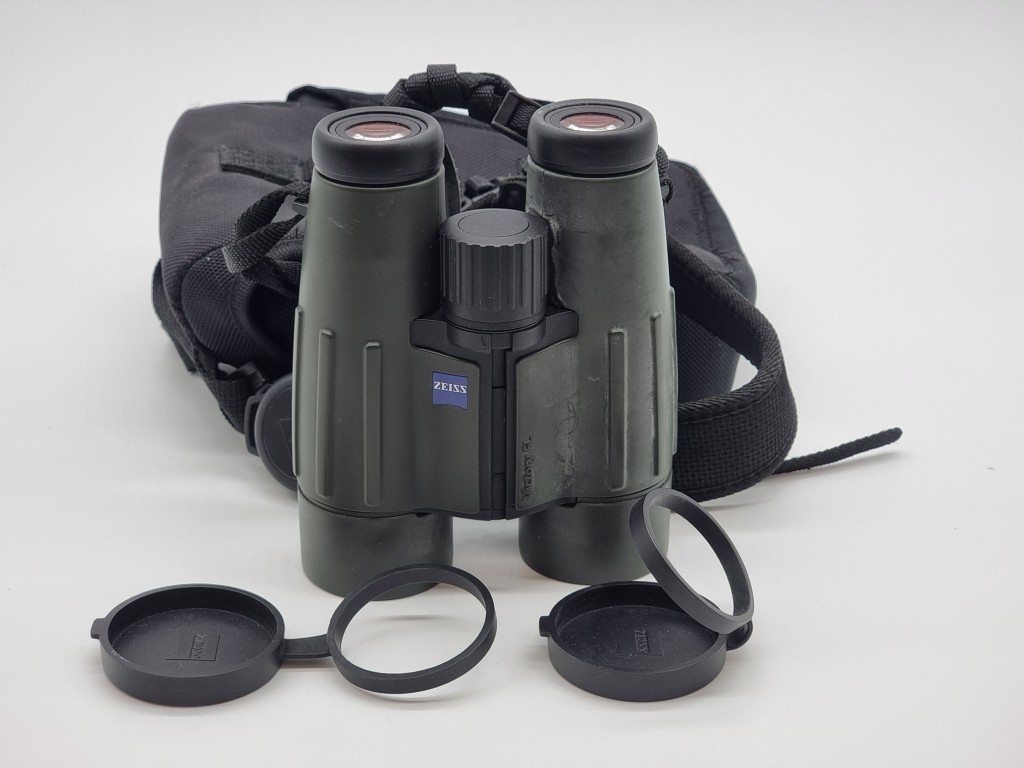 A pair of Zeiss Victory FL 8x42 binoculars, with lens caps and soft bag.