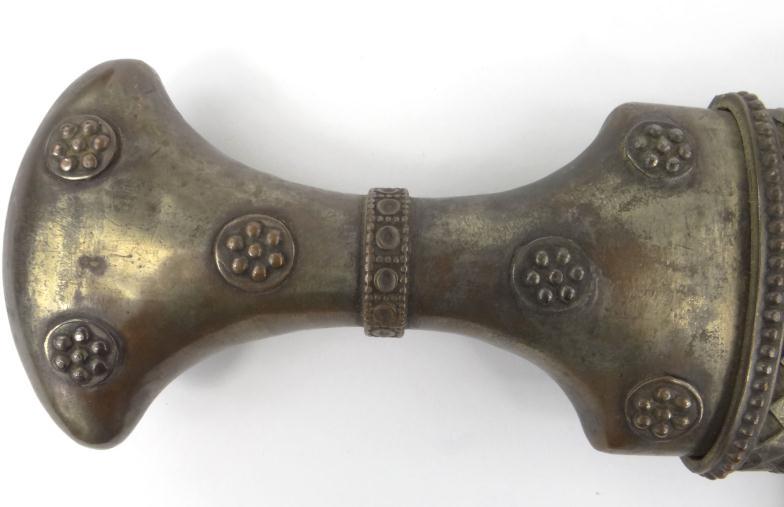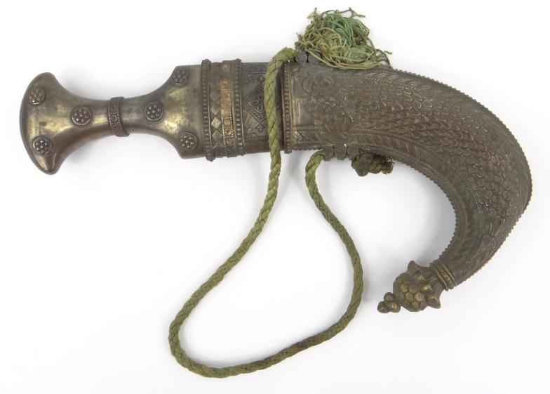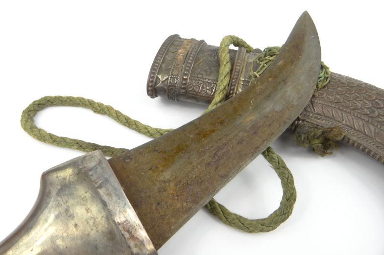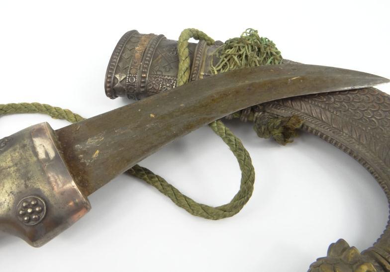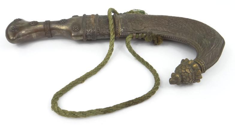 Middle Eastern Jambiya style steel bladed dagger with feathe...