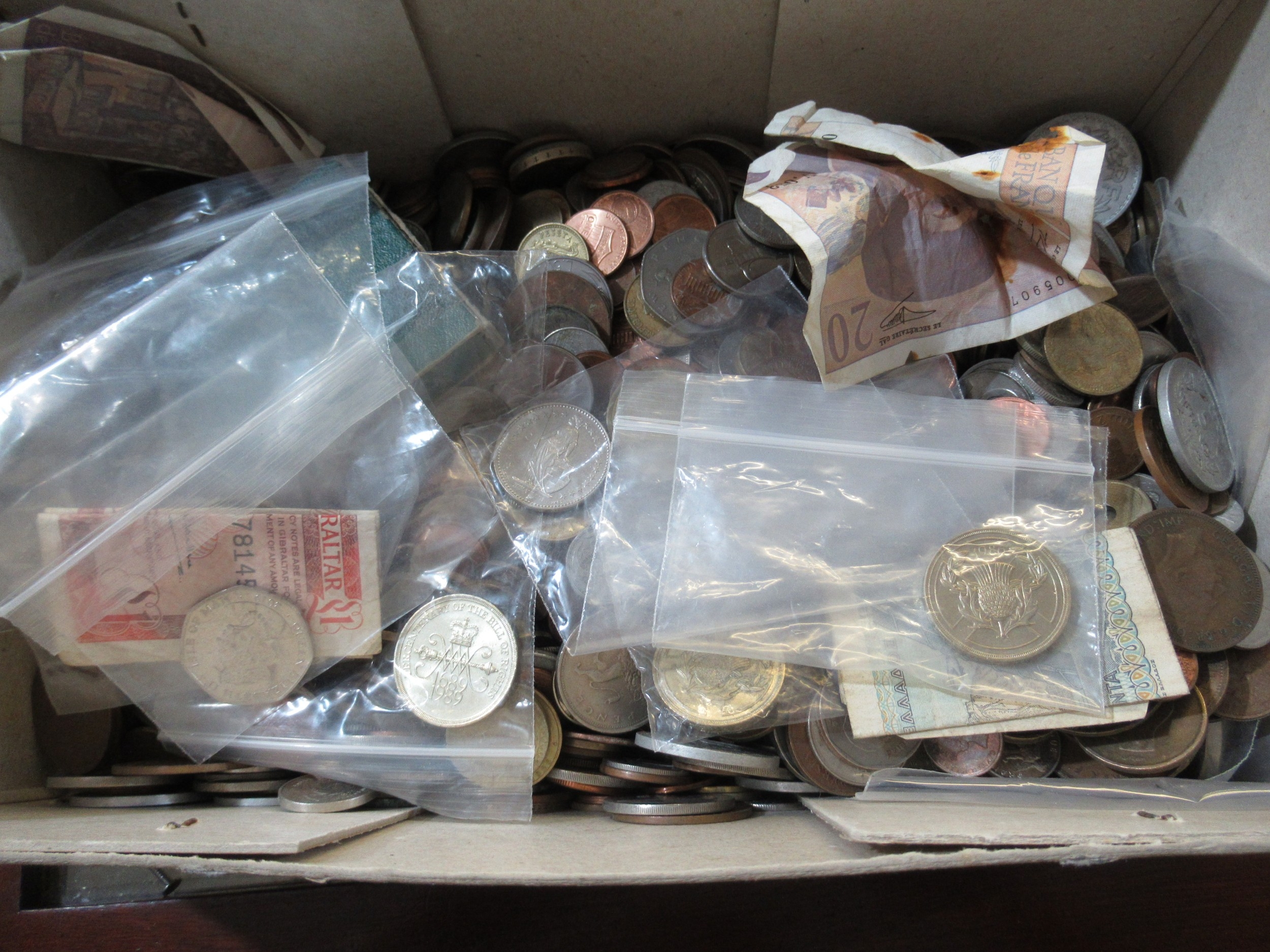 Box containing a large quantity of various World coins including British pre-decimal and later