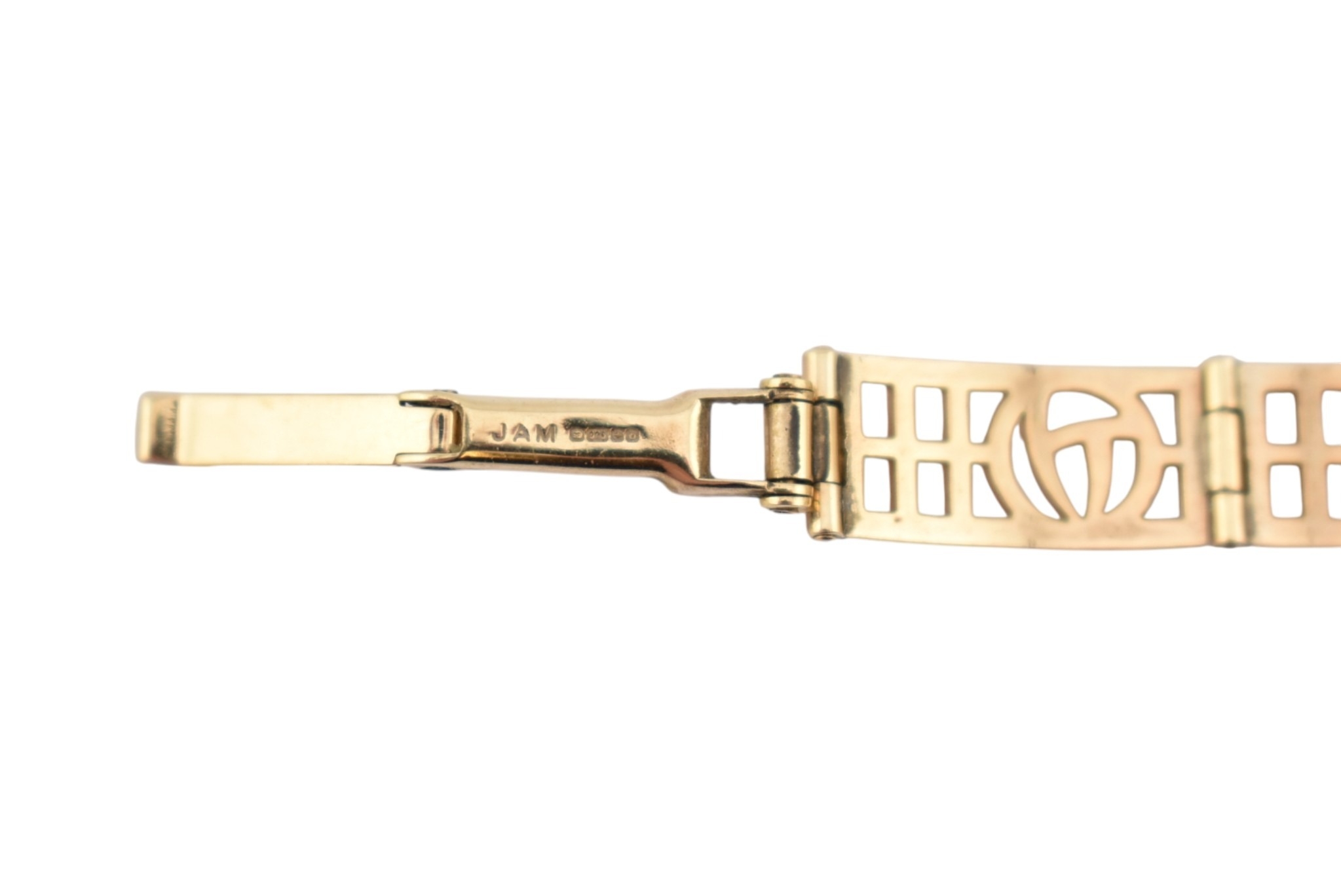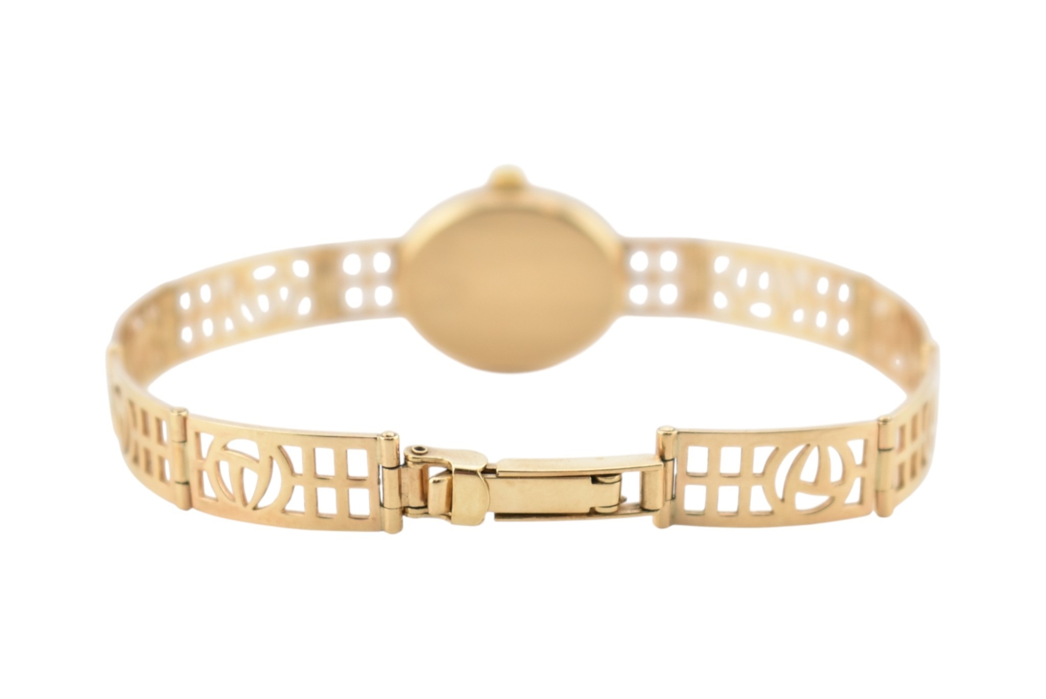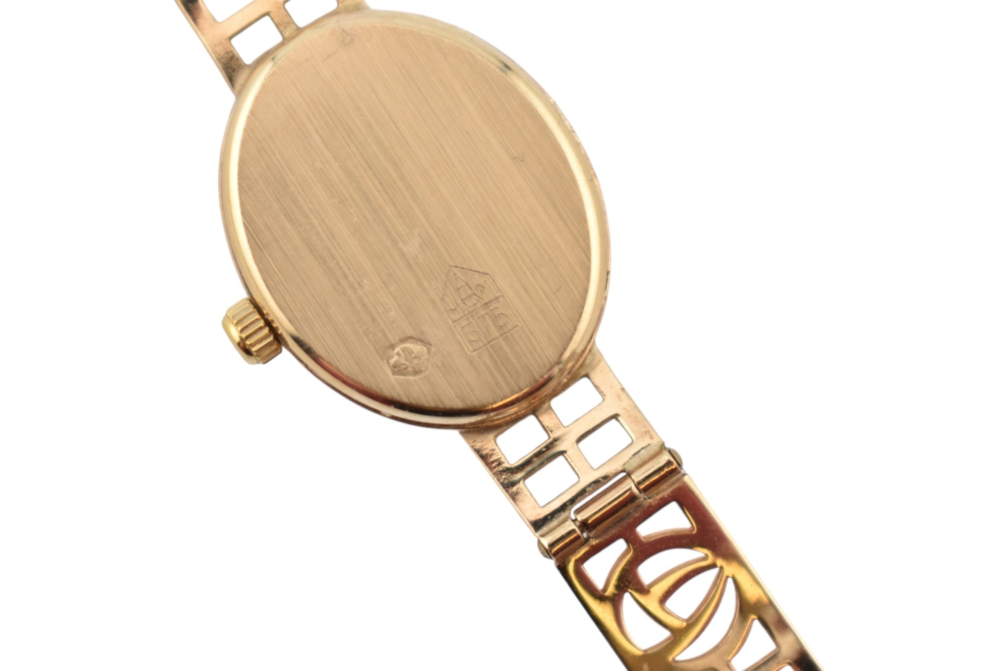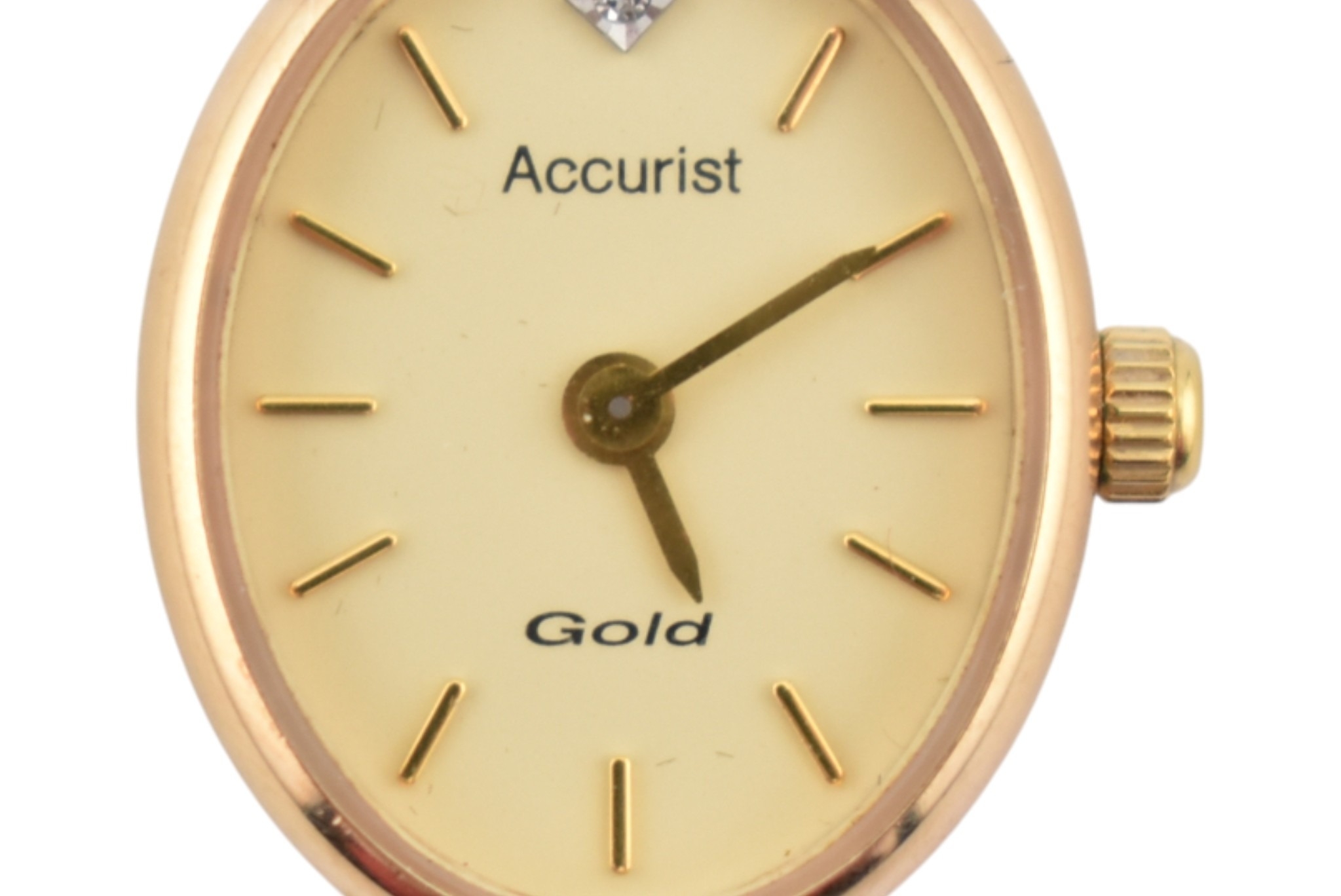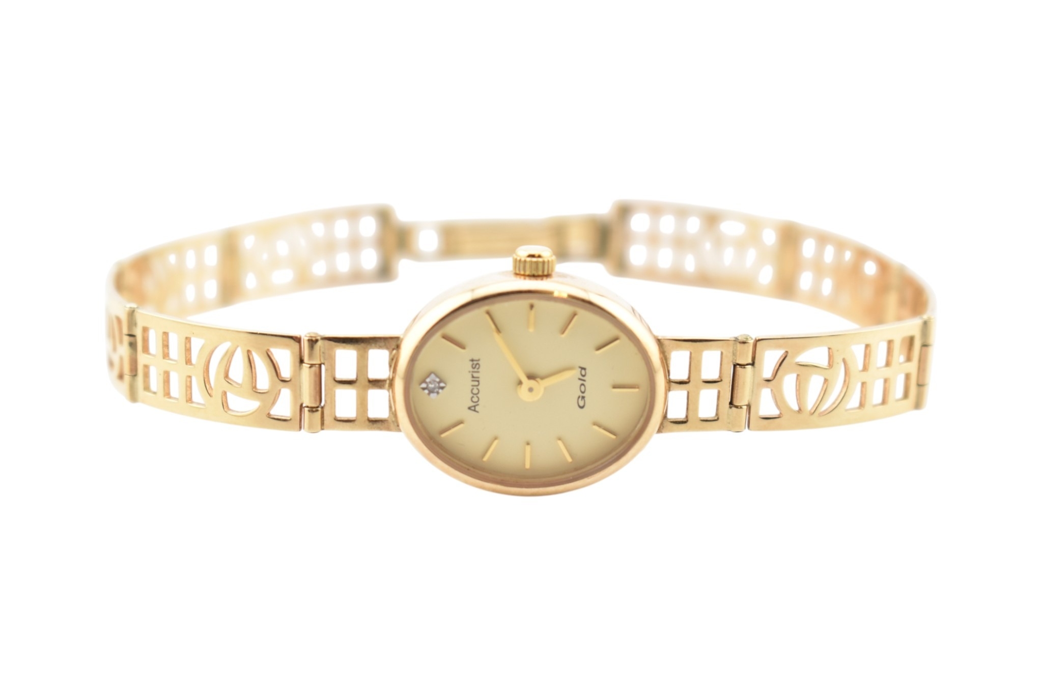 A hallmarked 9ct gold Accurist ladies wristwatch. Set on a hallmarked 9ct pierced linked strap. Hallmarked Birmingham, sponsors mark JAM. Weight 12.7g.