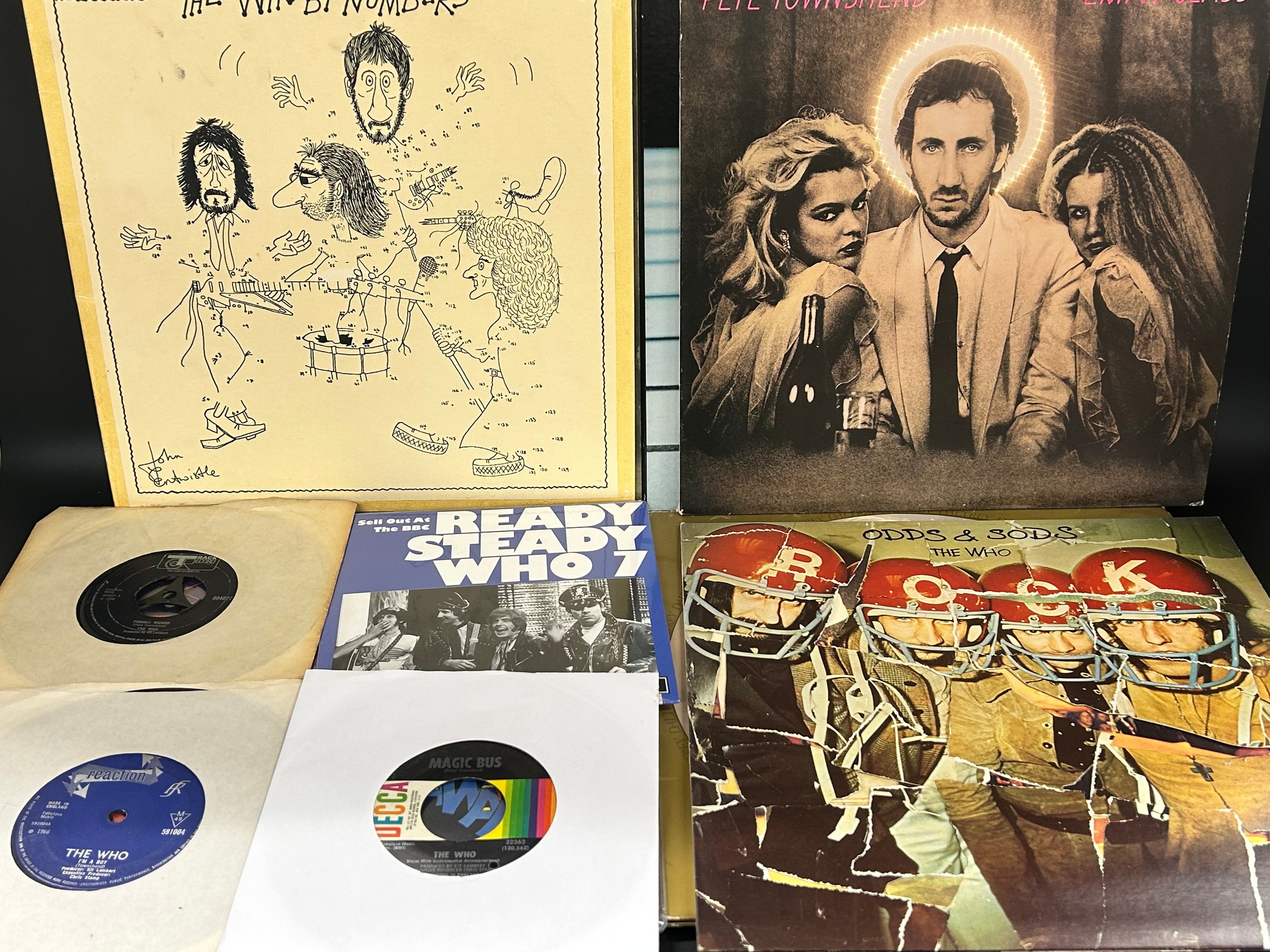 A collection of fifteen Who and related LPs and singles including first issue of Tommy, double LP, laminated sleeve, numbered booklet