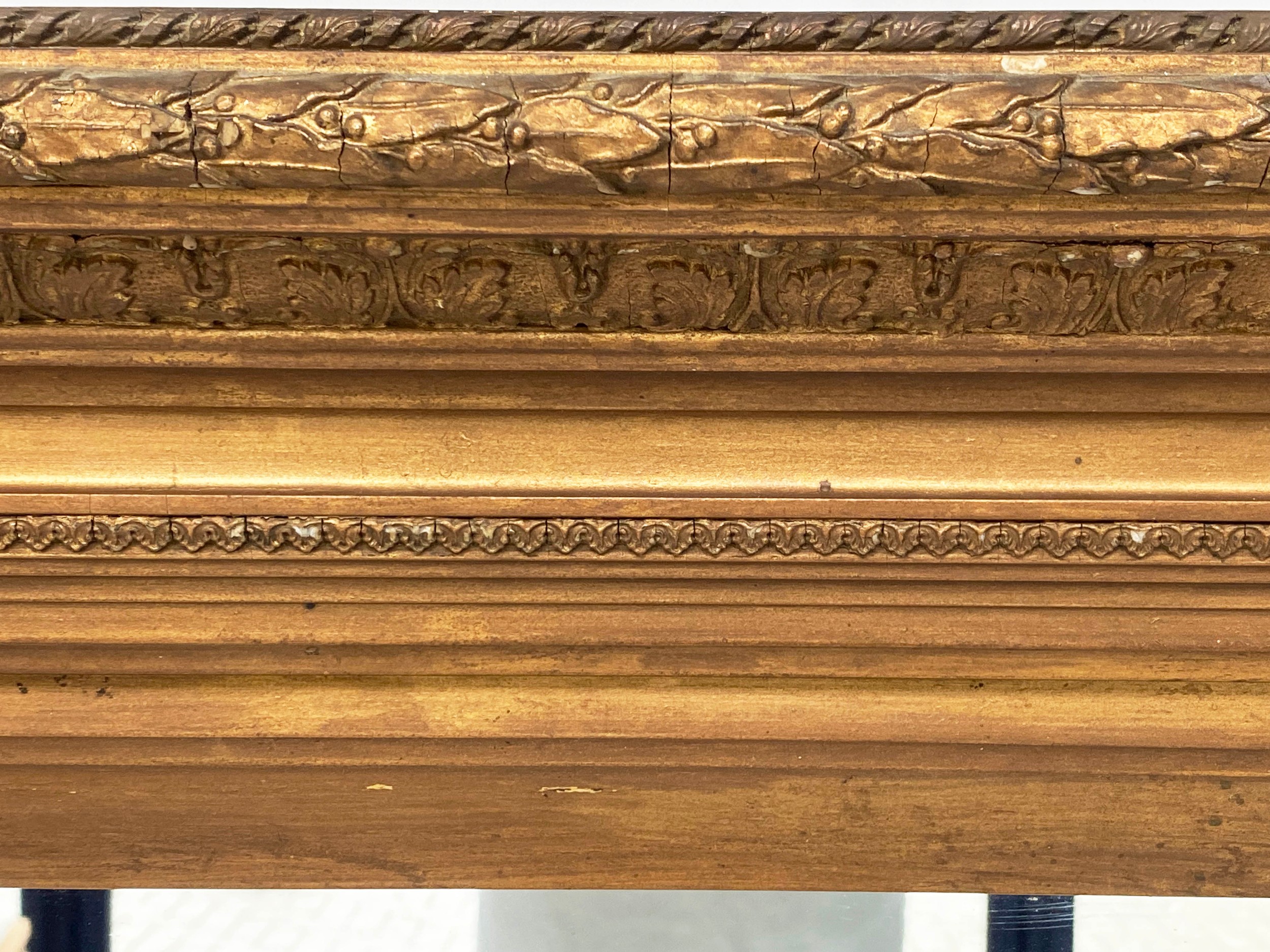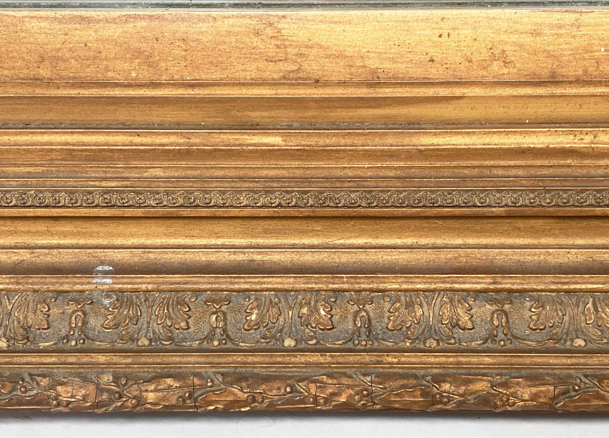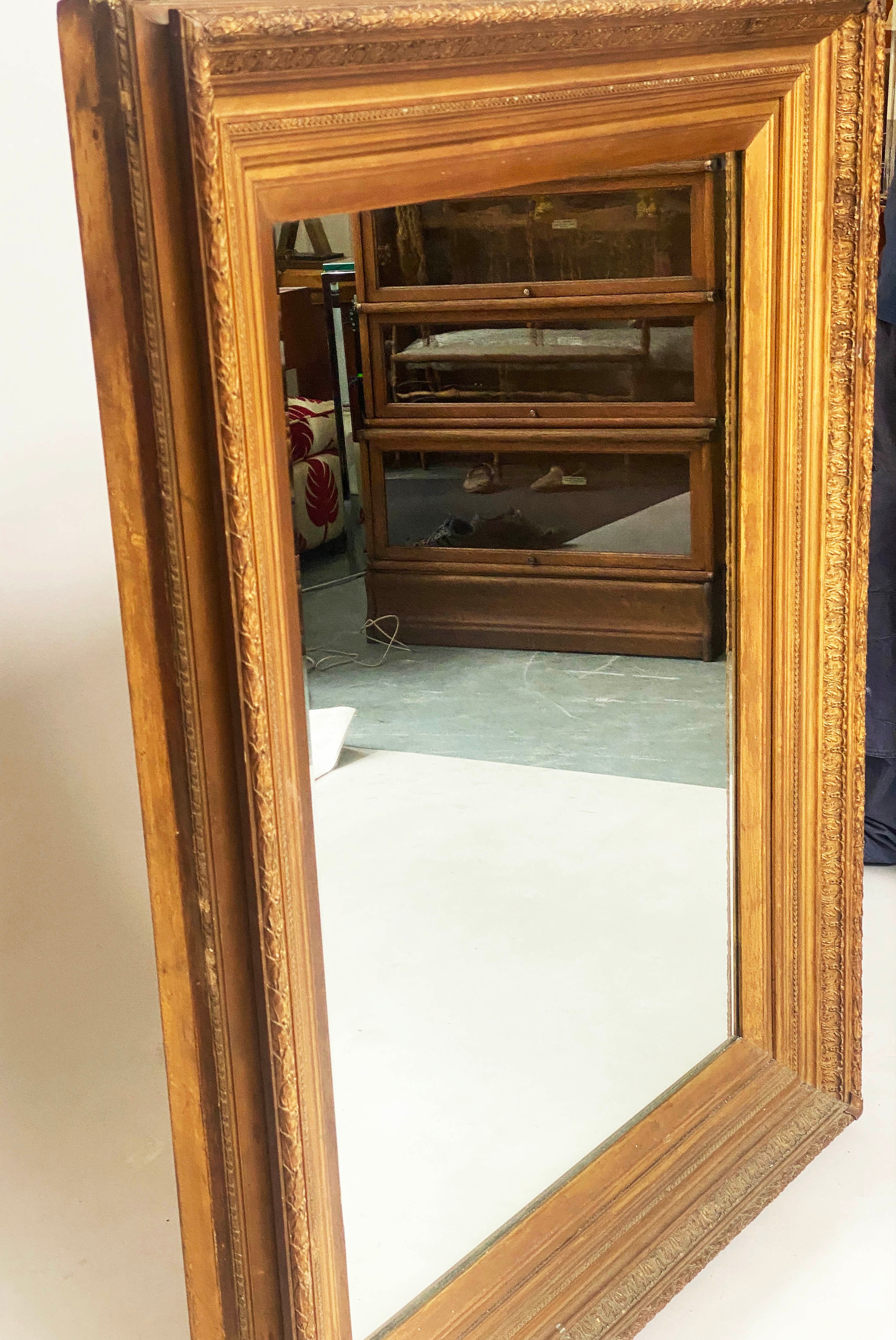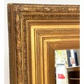 WALL MIRROR, 19th century giltwood and gesso rectangular moulded and decorated frame enclosing bevelled mirror plate, 106cm x 133cm.