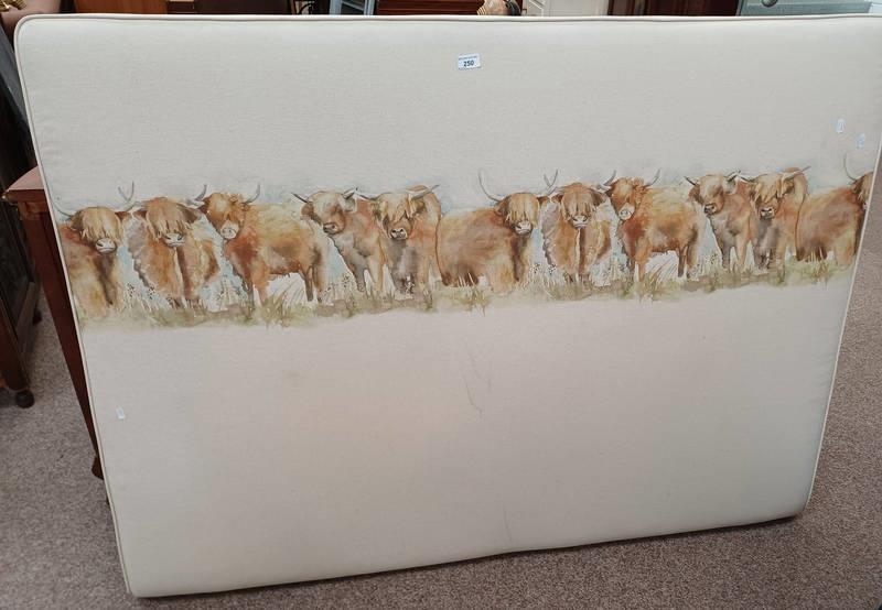 PADDED HEADBOARD WITH HIGHLAND COW DECORATION